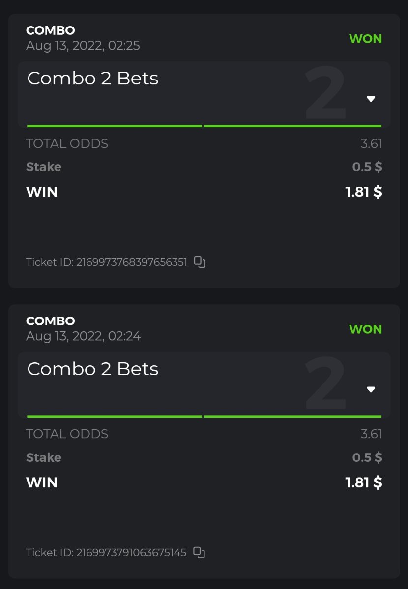 Moderator Mat Posted August 19, 2022 Author Moderator Share Posted August 19, 2022 RESULT SPORTS PARLAYS CHALLENGES #16 TOP WINNERS Calmboy QCLoverman adic333 Lixars rasmus1234 Clemerson Djunha POOL WINNERS lun321 GLAD1930 Ruthlyn Barbatosxd SLVone kevinxde Elpresidente jhonncueva abolfazl75 Tato_123 Mun Camz Satoshimaker itachixbox98 LemmeWin Unbaeten dislan O-0 Nattasya saanti27 Kajal8080 skyhook Mrnthcbvhwb Jorozz NicoIe vSeiji TotoyBrown Link to comment Share on other sites More sharing options...