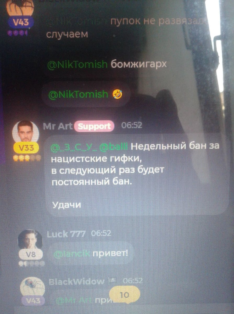Я получил бан на 1 неделю за то что скинул у чат гифку от бс..и притом супорт рашист своих не банил а только укр.. ребят забанил !!
