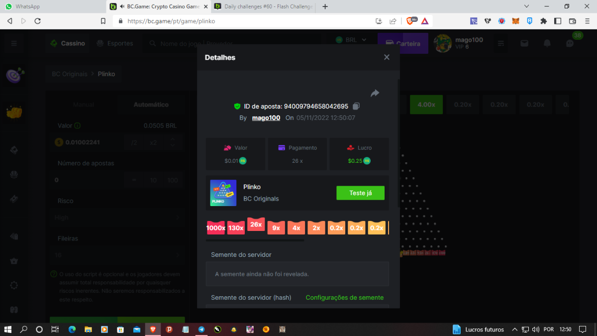 Black Tiger Posted November 5, 2022 Share Posted November 5, 2022 Read Carefully Before Start To Hunt Daily Challenges #60: PLINKOHunt :Win the highest pay outMin Payout requirement 25xMin Level 4️Duration Starting : Now End time : 23.59 UTC Time How to Join? Make screenshot + paste your bet link + UID or Profile link Mini bet amount - 0.01$ Any coin allowedReward Prizes 1st Place....... $7 BCD2nd Place..... $5 BCD3rd Place...... $4 BCD 🎖4th Place......$3 BCD5th - 10th Place......$1 BCD 🏵 Winners will be announcing next day after Roll Point 1 Link to comment Share on other sites More sharing options...