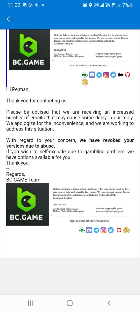 BCGame_Ewa Posted December 4, 2022 Share Posted December 4, 2022 Hello, you received answer via email, if you still have any questions regarding this please answer the email. If you wish to close your account kindly contact our Live Support.Ā Have a good day. Ā Link to comment Share on other sites More sharing options...