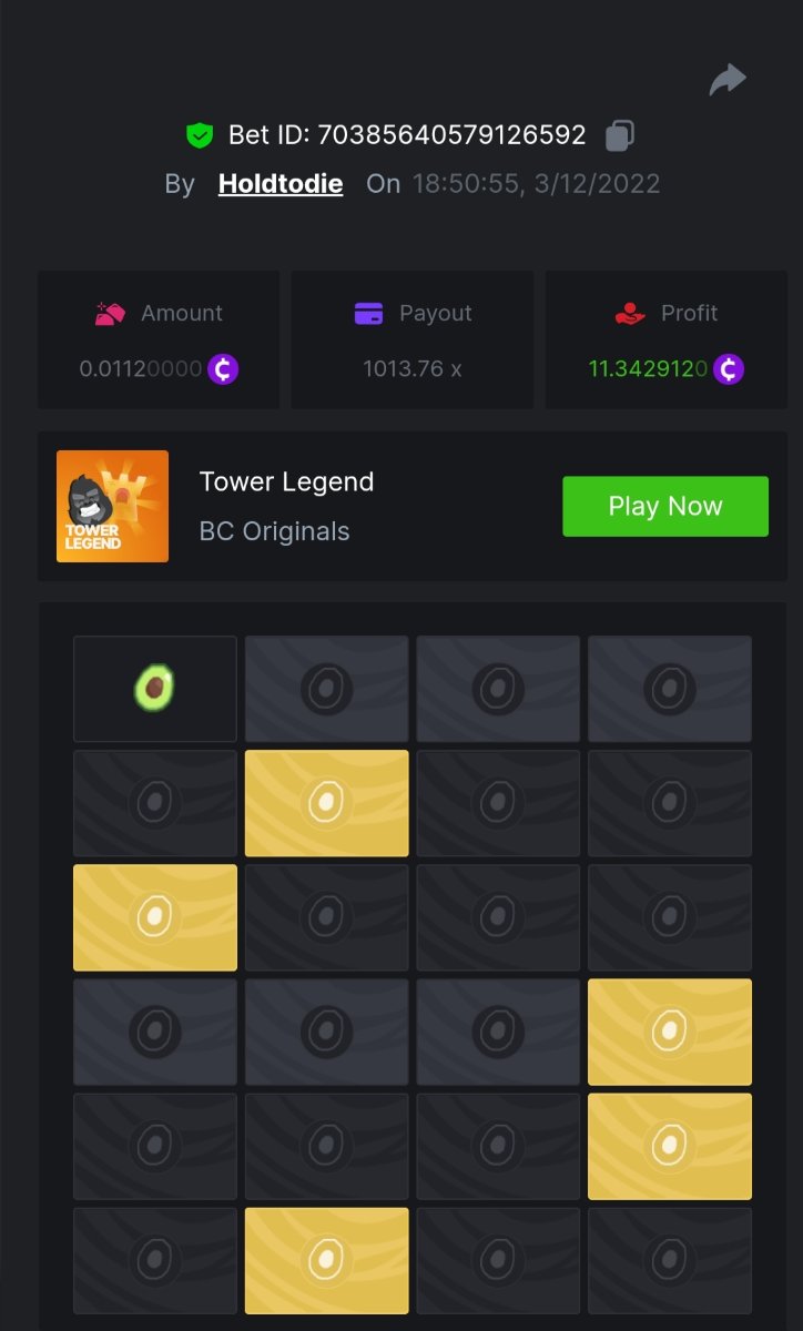 Black Tiger Posted December 3, 2022 Share Posted December 3, 2022 Read Carefully Before Start To Hunt Daily Challenges #88: Tower Legend Hunt :Win the highest pay outMin Payout requirement 100xMin Level 4️Duration Starting : Now End time : 23.59 UTC Time How to Join? Make screenshot + paste your bet link + UID or Profile linkMini bet amount - 0.01$ Any coin allowedReward Prizes 1st Place....... $7 BCD2nd Place..... $5 BCD3rd Place...... $4 BCD 🎖4th Place......$3 BCD5th - 10th Place......$1 BCD 🏵 Winners will be announcing next day after Roll Point 1 Link to comment Share on other sites More sharing options...