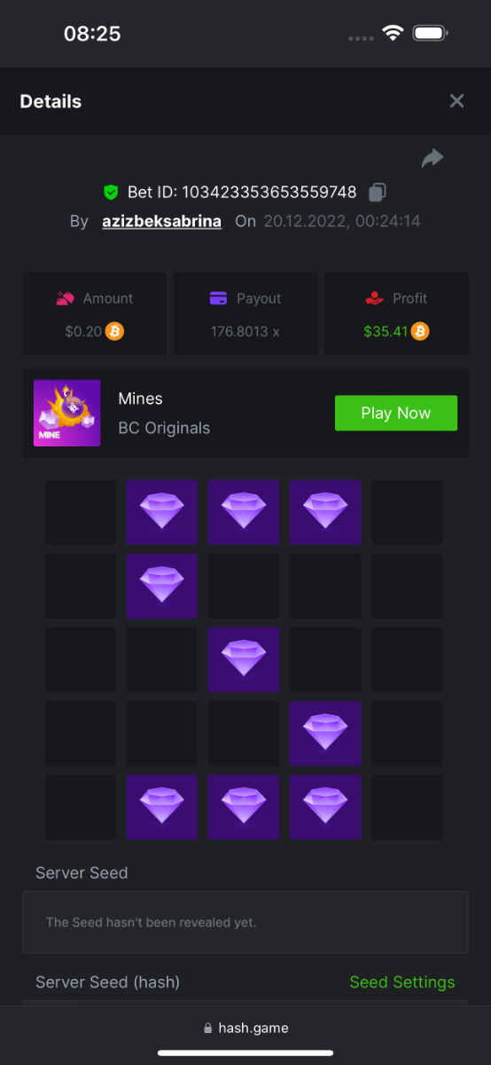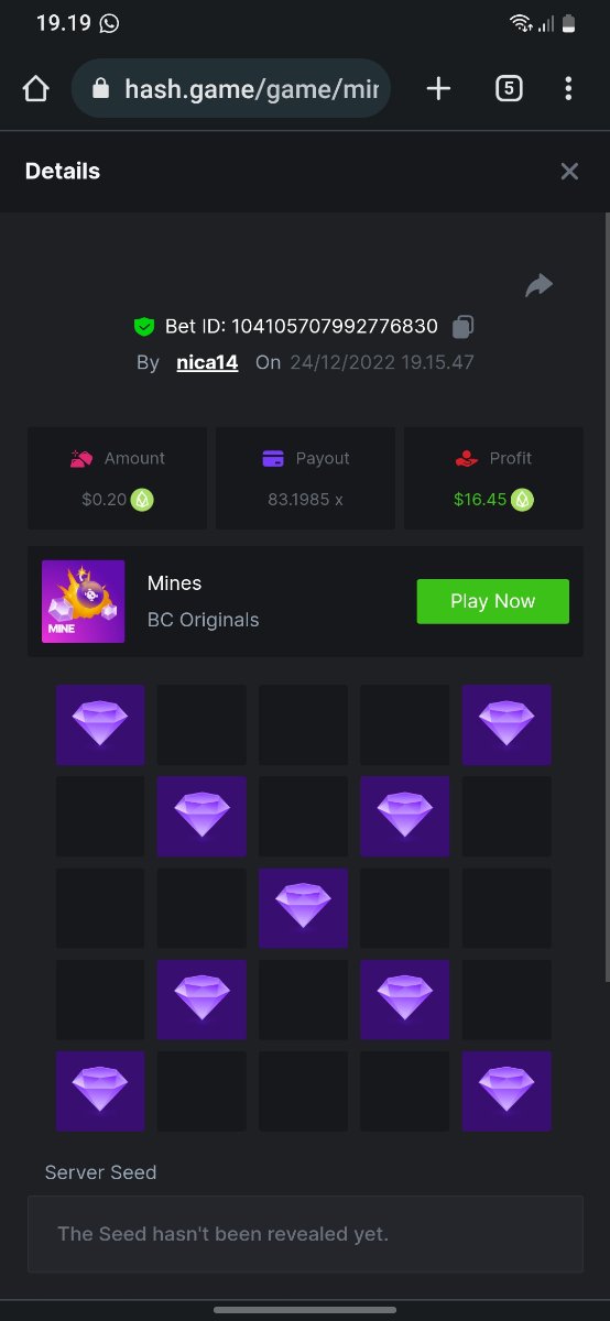 HAMYLTON20 Posted December 22, 2022 Share Posted December 22, 2022 https://hash.game/game/mines?s=09 Link to comment Share on other sites More sharing options...