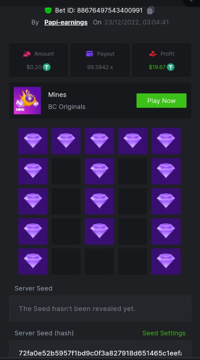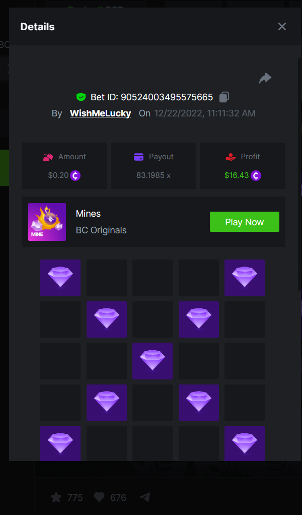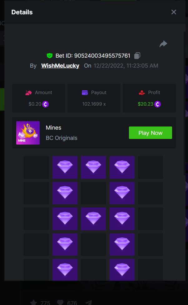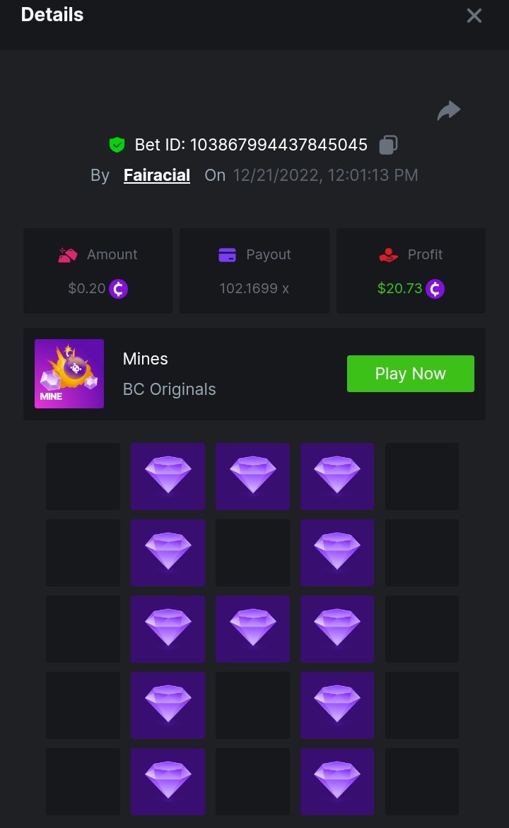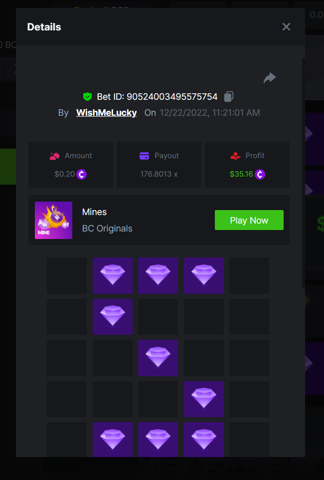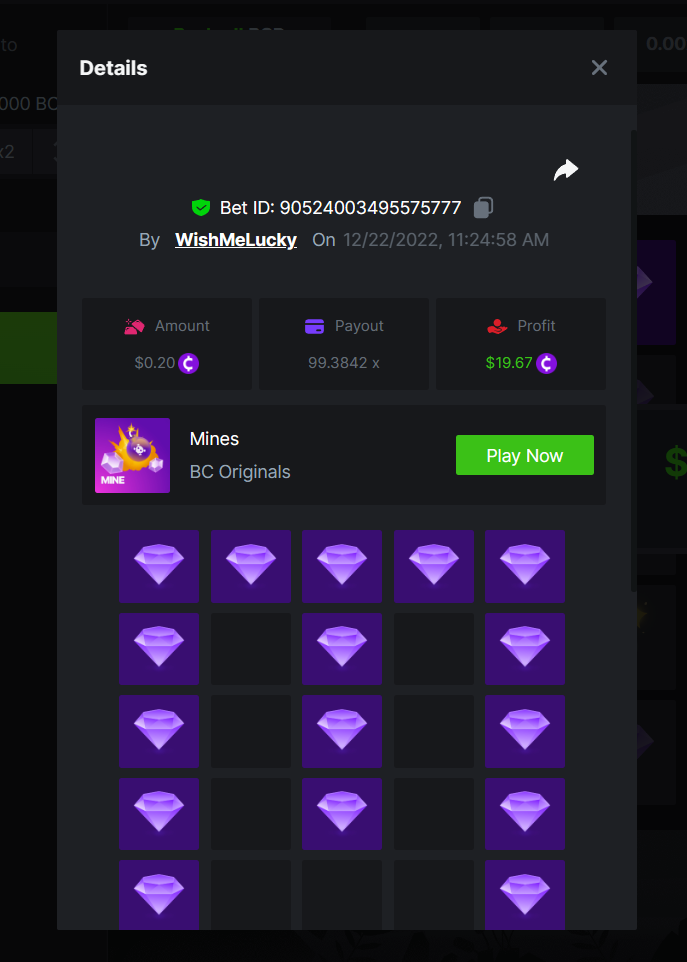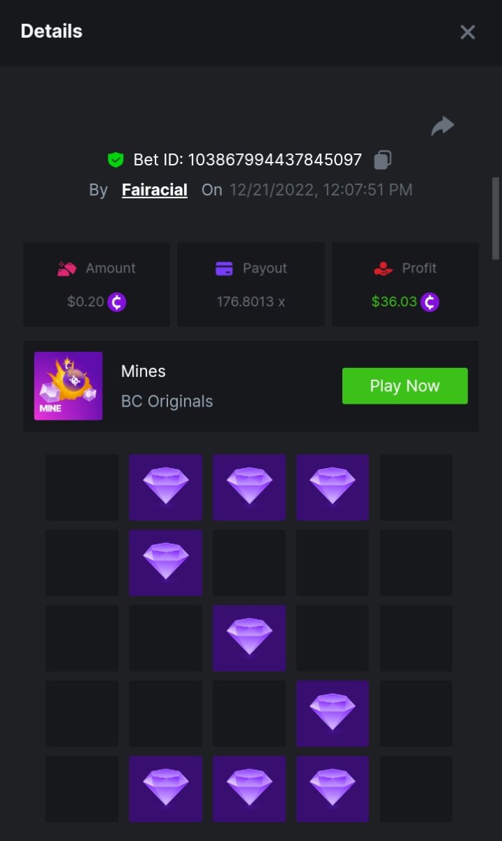 _BCGAME_ Posted December 20, 2022 Share Posted December 20, 2022 On 12/17/2022 at 2:24 AM, BCGame_Ewa said: $5,000 FIND WANTED LETTERS AND SAVE XMAS – MINES CHALLENGE Starts: 19, December 08:00 am GMTEnds: 26, December 08:00 am GMT Hey Everyone! Christmas is coming and we want to invite you to our Christmas Hunt. Help us save Xmas and take gifts from Santa bag. We are giving away $5,000 in prizes for all qualified participants. So head over to the Mines game page and get started! – (Check all the conditions of participation below). What's the Challenge? Find all letters from word ‚XMAS’ on Mines game using below mentioned settings: for ‘X’ - 9 diamonds 8 mines, payout 83.1985x for ‘M’ - 16 diamonds 4 mines, payout 99.3842x for ‘A’ - 12 diamonds 6 mines, payout 102.1699x for ‘S’ - 9 diamonds 9 mines, payout 176.8013xOnly players who post all 4 bets with exact the same settings as on below screenshots will win prizes. How to Enter To enter, copy the link of the bet you'd like to submit. Once you've copied it, paste it as a reply to this thread like so: Link: https://bc.game/#/sd/10YWJXCLX823GZ In the same post, upload a screenshot of your win by clicking the game ID WITH VIEW IN USD mode ENABLED (accessible at the bottom of dropdown menu for your wallet up top. This way, we can ensure that your bet indeed met the minimum requirement at the time of placing it: Link: https://bc.game/#/sd/10YWJXCLX823GZ Link: https://bc.game/#/sd/10YWK6WJG1YFBN Link: https://bc.game/#/sd/10YWLNKDX4QIVN Link: https://bc.game/#/sd/10YWMF6CJCR95F Minimum VIP Minimum VIP 4 Minimum Payouts Need to find all 4 letters with mentioned payouts for each. Minimum Bet Size $0.2 USD equivalent Eligible Coins All cryptocurrencies are eligible (excepting JB) Prize pool & Reward Breakdown Each particpant who find correcly all 4 letters from word 'XMAS' will receive EQUAL reward from prize pool as below: Please combine all of your hits together in a SINGLE post. Edit your existing post for additional hits, don't create a new post. Each eligible entry must have the Bet Slip URL, failure to include it will disqualify participation in the event. Bet Slip image is not mandatory. Bets must be posted within 24 hours of placing bet in order to keep things fair for everyone. Bets must be made during the specified time window stated above. This thread will lock automatically when the time period is over. One (1) entry per household. Anyone found attempting to win multiple prizes will be disqualified from this challenge as well as all future challenges. Failure to follow instructions will result in your submission being null and void. By entering this challenge, you acknowledge that BC.Game has the final decision on results and placement. Payouts will be distributed after the event is finished. Please note that it could take up to 48 hours after the completion of the event. Good luck everyone! Merry Christmas! Link to comment Share on other sites More sharing options...