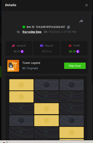 Black Tiger Posted January 6, 2023 Share Posted January 6, 2023 Read Carefully Before Start To Hunt Daily Challenges #122 : Tower Legend Hunt :Win the highest pay outMin Payout requirement 100xMin Level 4️Duration Starting : Now End time : 23.59 UTC Time How to Join? Make screenshot + paste your bet link + UID or Profile link Mini bet amount - 0.01$ Any coin allowedReward Prizes 1st Place....... $7 BCD2nd Place..... $5 BCD3rd Place...... $4 BCD 🎖4th Place......$3 BCD5th - 10th Place......$1 BCD 🏵 Winners will be announcing next day after Roll Point 1 Link to comment Share on other sites More sharing options...