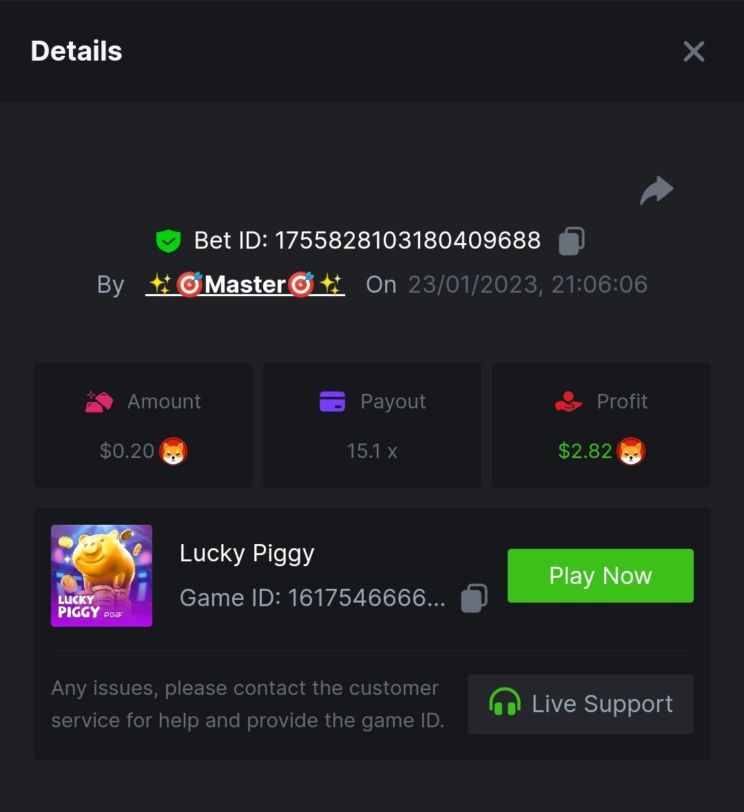 ToughLuck Posted January 23, 2023 Share Posted January 23, 2023 Treasures Of Aztec 17.45 x https://bc.game/#/sd/11201378T68RGZ Lucky Piggy 16 x https://bc.game/#/sd/1122B462K99C7N The Great Icescape 43.76 x https://bc.game/#/sd/1123SGMQOSI6MR Link to comment Share on other sites More sharing options...