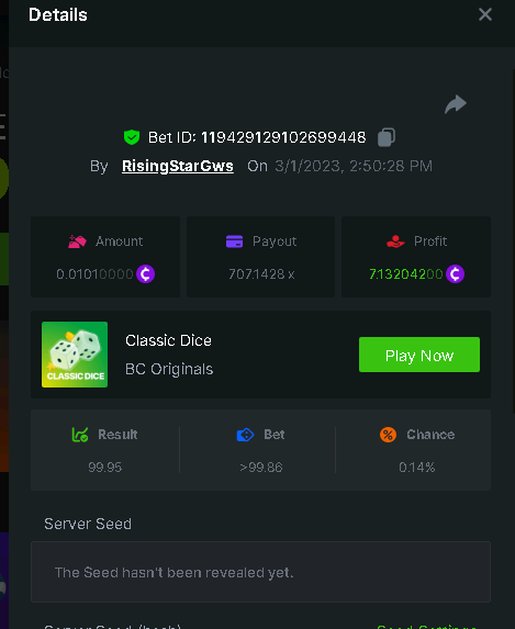 Maksypro Posted March 1, 2023 Share Posted March 1, 2023 Read Carefully Before Start To Hunt Daily Challenges #161 CLASSIC DICE Hunt : Win the highest pay out Min Payout requirement 100x Min Level 4 ️Duration Starting : Now End time : 23.59 UTC Time How to Join? Make screenshot + paste your bet link + UID or Profile link Mini bet amount - 0.01$ Any coin allowed Reward Prizes 1st Place.....$7 BCD 2nd Place.....$5 BCD 3rd Place.....$4 BCD 4th Place.....$3 BCD 5th Place.....$2 BCD 🏵 Winners will be announcing next day after Roll Point! 1 Link to comment Share on other sites More sharing options...