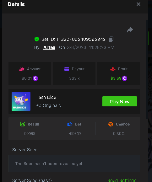 Maksypro Posted March 8, 2023 Share Posted March 8, 2023 Read Carefully Before Start To Hunt Daily Challenges #168 HASH DICE Hunt : Win the highest pay out Min Payout requirement 100x Min Level 4 ๏ธDuration Starting : Now End time : 23.59 UTC Time How to Join? Make screenshot + paste your bet link + UID or Profile link Mini bet amount - 0.01$ Any coin allowed Reward Prizes 1st Place.....$7 BCD 2nd Place.....$5 BCD 3rd Place.....$4 BCD 4th Place.....$3 BCD 5th Place.....$2 BCD ๐ต Winners will be announcing next day after Roll Point! 1 Link to comment Share on other sites More sharing options...