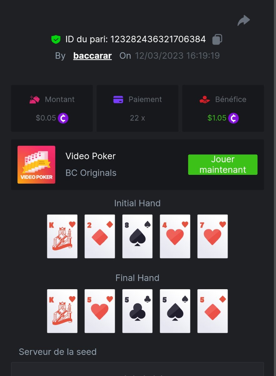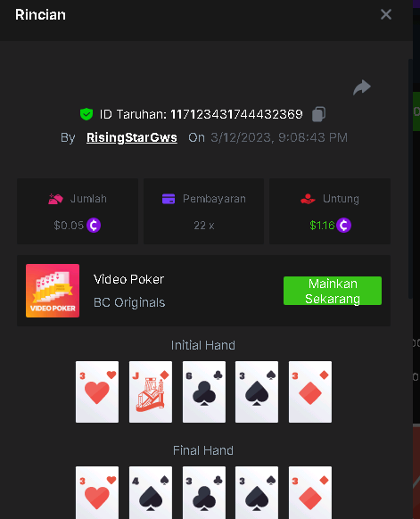 Maksypro Posted March 12, 2023 Share Posted March 12, 2023 (edited) Read Carefully Before Start To Hunt Daily Challenges #172 Video Poker Hunt : Win the highest pay out Min Payout requirement 22x Min Level 4 ๏ธDuration Starting : Now End time : 23.59 UTC Time How to Join? Make screenshot + paste your bet link + UID or Profile link Mini bet amount - 0.01$ Any coin allowed Reward Prizes 1st Place.....$7 BCD 2nd Place.....$5 BCD 3rd Place.....$4 BCD 4th Place.....$3 BCD 5th Place.....$2 BCD ๐ต Winners will be announcing next day after Roll Point! Edited March 12, 2023 by Maksypro Link to comment Share on other sites More sharing options...