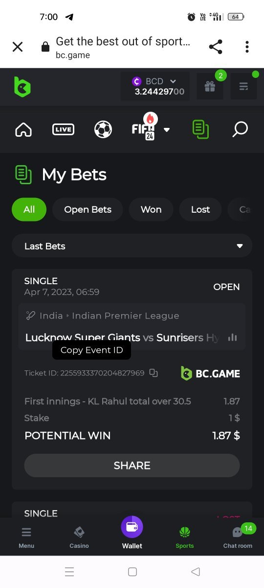 Moderator LuCifer_BcGAmE Posted April 5, 2023 Moderator Share Posted April 5, 2023 $150 BC.GAME Sports IPL Challenge #1 ️ Start: 05,April️ Ends: 09,April What is a Challenge? Make a bet using the sports IPL Matches and bet-markets of your choice!!!All submissions from a player will be added up as a final score. REQUIREMENTS Minimum VIP Minimum VIP 04 Level and above. Minimum Odds requirement Minimum odds 1.85 (European) and above. Minimum bet size Equivalent to US $1 Bet type Only Pre-match OPEN Bets Eligible currencies All cryptocurrencies are eligible (except JB,BCL) Available Prizes Positions 1st 2nd 3rd 4th 5th 06th - 07th qualify players Prizes $50 $30 $20 $10 $05 $2.5 (each) $30 GENERAL TERMS Cashout Bets will not be counted. Per match only one bet allowed. Toss bet not allowed. Please combine all your hits into a SINGLE post. Edit your existing post to get additional hits, don't create a new post. Bets must be placed before the Match start One (1) entry per family. If someone finds multiple prizes, they will be disqualified from the challenge as well as all future challenges. Failure to follow the instructions will result in the cancellation of your submission. By entering this challenge, you acknowledge that BC.Game has final decision rights over results and placement. Link to comment Share on other sites More sharing options...
