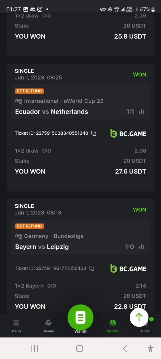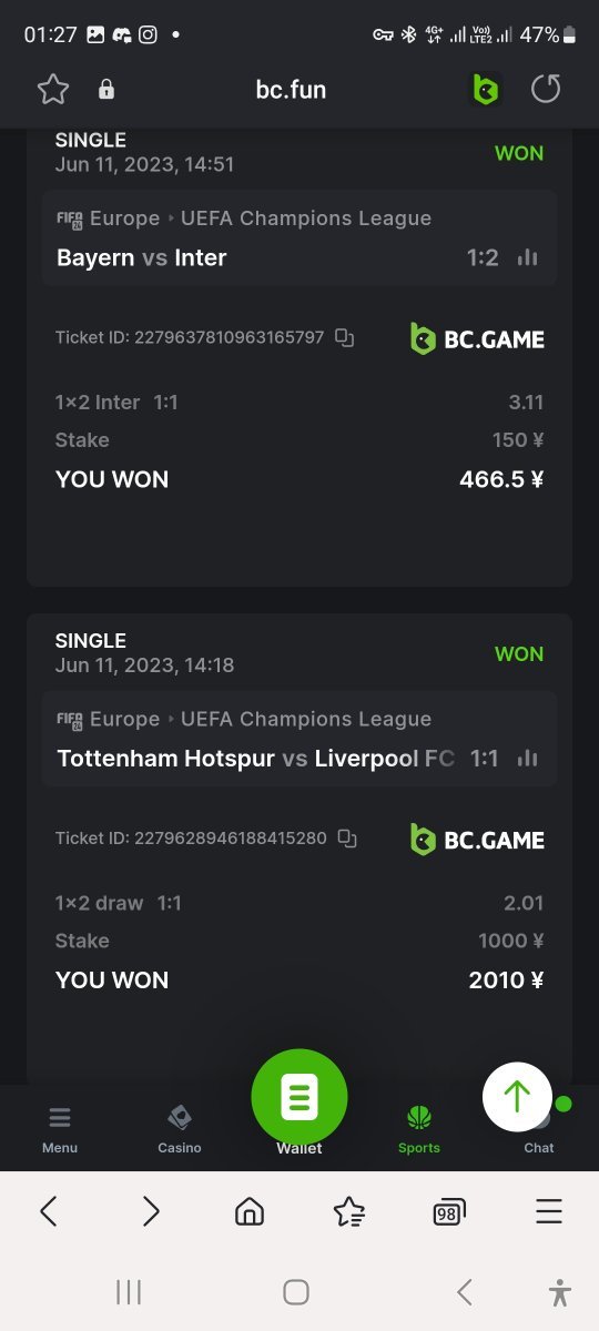 Admin BC_Jack Posted June 15, 2023 Admin Share Posted June 15, 2023 $3,000 BC.GAME SPORTS PARLAYS CHALLENGE #59 DURATION: 15th JUNE - 22nd JUNE 12:00 pm UTC Greetings, sports enthusiasts! We're starting a fresh week of Parlay with round #59! There's an impressive prize pool of $3,000 up for grabs, and every participant has a chance to win prizes. Simply meet the minimum requirements and secure yourself guaranteed prizes! Without any more delay, let's dive in and acquaint ourselves with the terms and conditions. What is the challenge? Win a multi-bet with at least x3 by betting on at least 3 matches Make a multi-combo-parlay bet using the sports matches and bet-markets of your choice All submissions from a player will be added up as a final score. A multi-bet with "OPEN" is valid to submit. Any closed, cashed-out or old bet slips will not be entertained. Using a Free bet ticket to enter this event is non-acceptable. Voided, half-loss, and half-win bets aren't eligible for the challenge! Providing the ticket id and screenshot is mandatory How to Enter To participate, post your Ticket ID as a reply to this thread for example: Ticket ID: 2126602890796736992 Along with the screenshot of your accumulated ticket. Ticket ID: 2126602890796736992 Minimum VIP Minimum VIP 4 and phone verified only. Minimum Requirements Multiplier minimum 3x by betting on at least 3 matches. Multipliers should not be used more than once. (For eg. 1.91x only once per parlay ticket) Minimum Bet Equivalent to $1 Eligible Currencies All cryptocurrencies are eligible (except JB & BCL) Available Prizes Miner changes in the prize pool has been been applied where all participants can win something. Participants 1st 2nd 3rd 4th - 10th 11th - 20th All Others Bounty 1-50 $200 $100 $50 $140 $110 $75 $75 50-150 $400 $200 $100 $280 $220 $150 $150 150+ $800 $400 $200 $560 $440 $300 $300 BOUNTY Go an extra mile and get a share of upto $300 Bounty! To be a part of Bounty, share parlay over 50x! Original rules apply with all minimum requirements. GENERAL TERMS If a selection results in a void or push, the bet will remain eligible as long as it remains equal to or greater than a triple bet and meets the odds requirements. Bets withdrawn will not be counted. Please combine all your hits into a SINGLE post. Edit your existing post to get additional hits, don't create a new post. Bets must be placed during the time window specified above. This thread will automatically lock when the time period ends. One (1) entry per family. If someone finds multiple prizes, they will be disqualified from the challenge as well as all future challenges. Failure to follow the instructions will result in the cancellation of your submission. By entering this challenge, you acknowledge that BC.Game has final decision rights over results and placement. Payouts will be distributed after the event is finished. Please note that it could take anywhere between 24 hours to 7 days after the completion of the event. 2 Link to comment Share on other sites More sharing options...