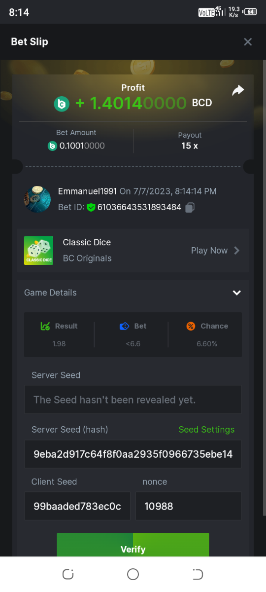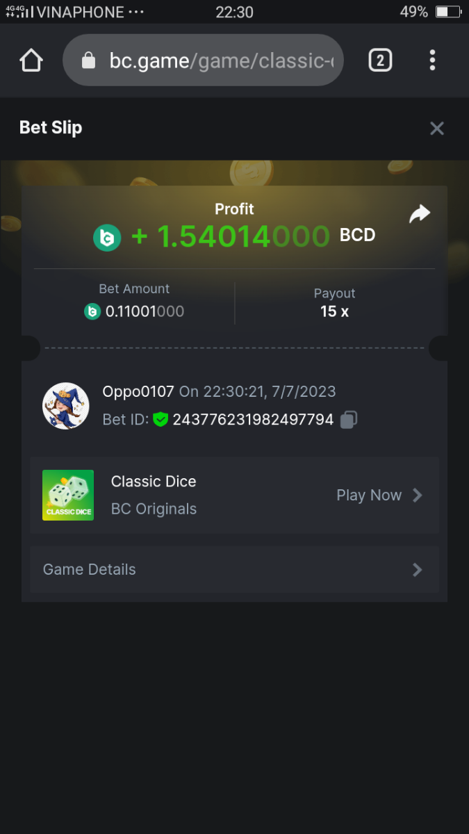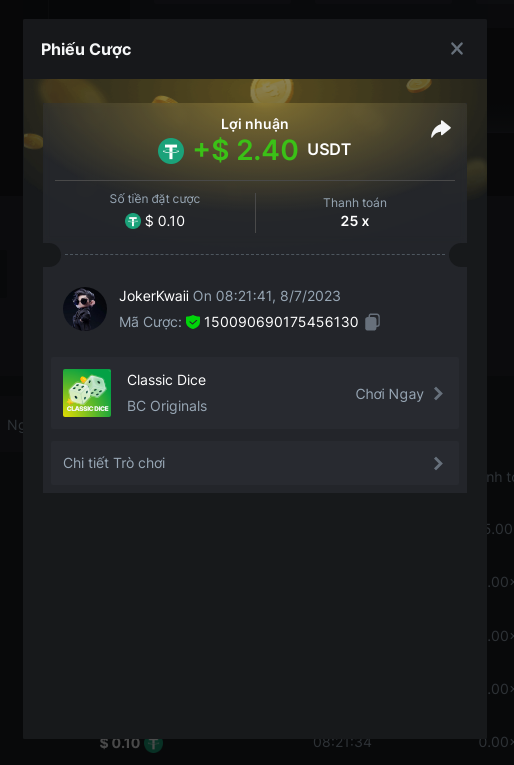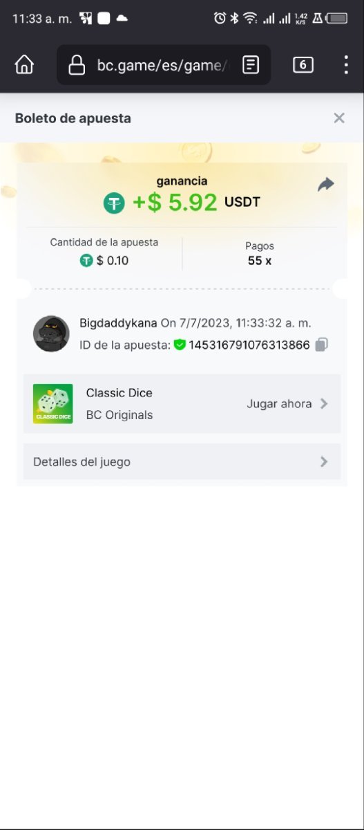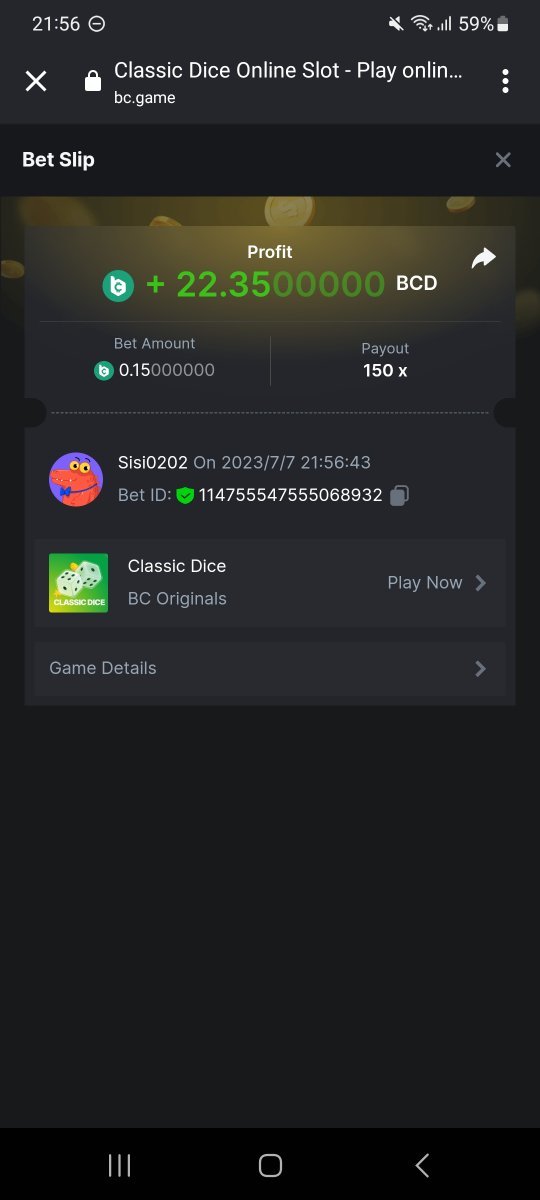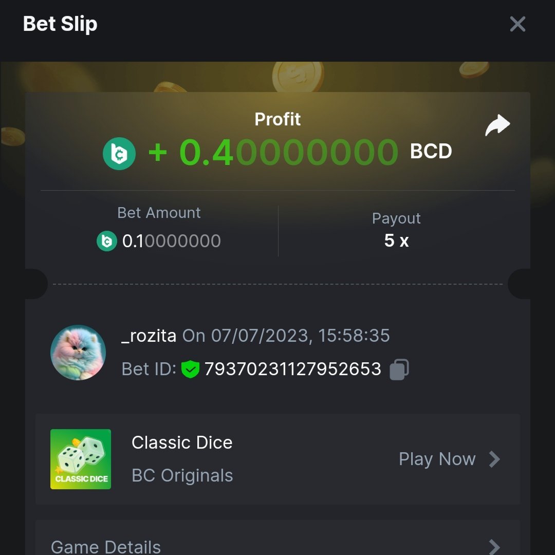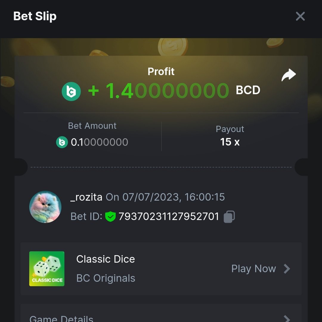 Admin BC_Jack Posted July 7, 2023 Admin Share Posted July 7, 2023 $5k Prestige Classic Dice Challenge #96 DURATION: 7th JULY - 14th JULY 12:30 pm UTC Welcome VIPs! Get ready to seize the moment and embrace the thrill! Brace yourselves for the electrifying Classic Dice challenge! Your mission? Conquer 25 precise target payouts and unite as a formidable force, amassing a colossal 1 point (with a maximum of 16 points)! But that's not all – the prize pool of $5,000 awaits those who dare to take part in this extraordinary and audacious event! Prepare yourselves, for life is a daring adventure, filled with untold possibilities. It's time to cast away doubt and hesitation, and let the dice guide your destiny! Let the games begin! What's the Challenge? Complete as many of the following 25 payouts on our in-house Classic Dice. Must be a winning bet. | 5x | 15x | 25x | 33x | 44x | 55x | 66x | 75x | 90x | 99x | 100x | 150x | 180x | 220x | 300x | 330x | 396x | 450x | 550x | 825x | 900x | 1100x | 2475x | 3300x | 4950x | Each payout you hit above counts as 1 point (Maximum 1 point for each payout). If there is a tie, the player with the higher average bet amount (in USD) shall be the winner. How to Enter To enter, copy the link of the bet you'd like to submit. Once you've copied it, paste it as a reply to this thread like so: Link: https://bc.game/#/sd/11DC5WGXAYR1G3 In the same post, upload a screenshot of your win by clicking the game ID WITH VIEW IN USD mode ENABLED (accessible at the bottom of dropdown menu for your wallet up top. This way, we can ensure that your bet indeed met the minimum requirement at the time of placing it: Link: https://bc.game/#/sd/11DC5WGXAYR1G3 Minimum VIP Minimum VIP 4 with phone verified will be eligible! Eligibility to Win Prize Win at least 4 payouts to qualify. Minimum Bet Size $0.10 USD equivalent Eligible Coins All cryptocurrencies are eligible (excepting JB) Available Prizes GENERAL TERMS Please combine all of your hits together in a SINGLE post. Edit your existing post for additional hits, don't create a new post. Each eligible entry must have the Bet Slip URL, failure to include it will disqualify participation in the event. Bet Slip image is not mandatory. Bets must be posted within 24 hours of placing bet in order to keep things fair for everyone. Bets must be made during the specified time window stated above. This thread will lock automatically when the time period is over. One (1) entry per household. Anyone found attempting to win multiple prizes will be disqualified from this challenge as well as all future challenges. Failure to follow instructions will result in your submission being null and void. By entering this challenge, you acknowledge that BC.Game has the final decision on results and placement. Payouts will be distributed after the event is finished. Please note that it could take anywhere between 24 hours to 7 days after the completion of the event. 3 Link to comment Share on other sites More sharing options...