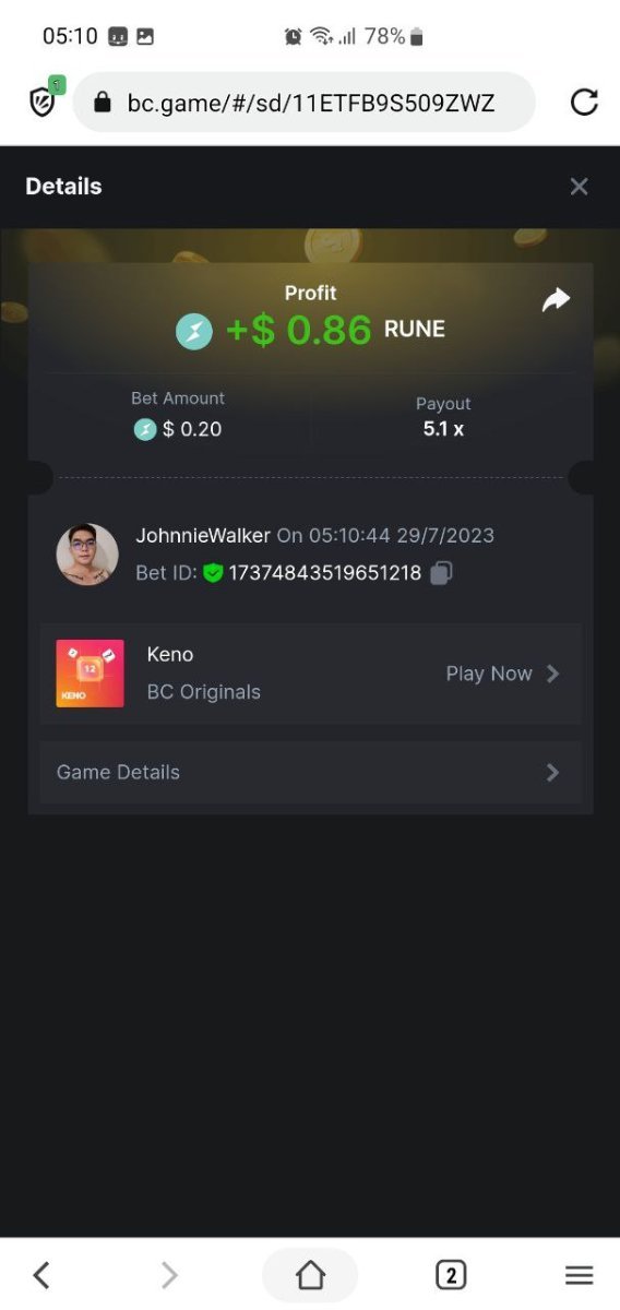 81.5 x  0.21$   https://bc.game/#/sd/11ET3Z3MOVF7KJ  -