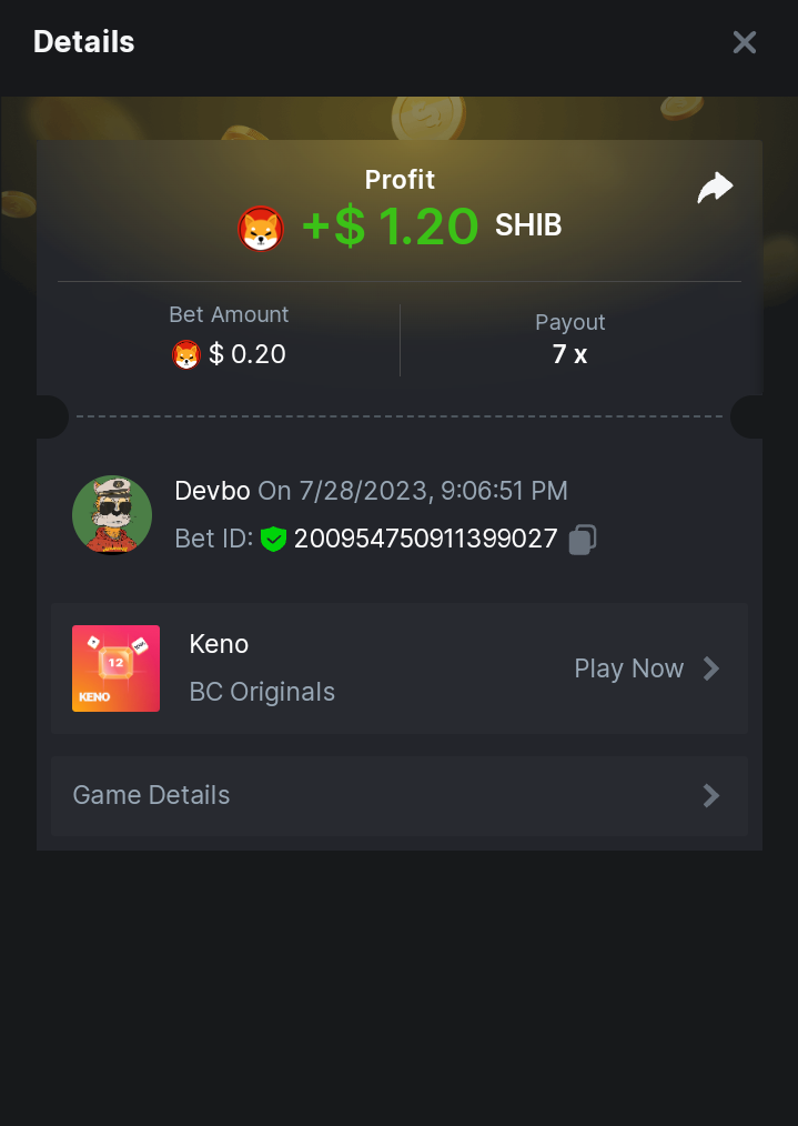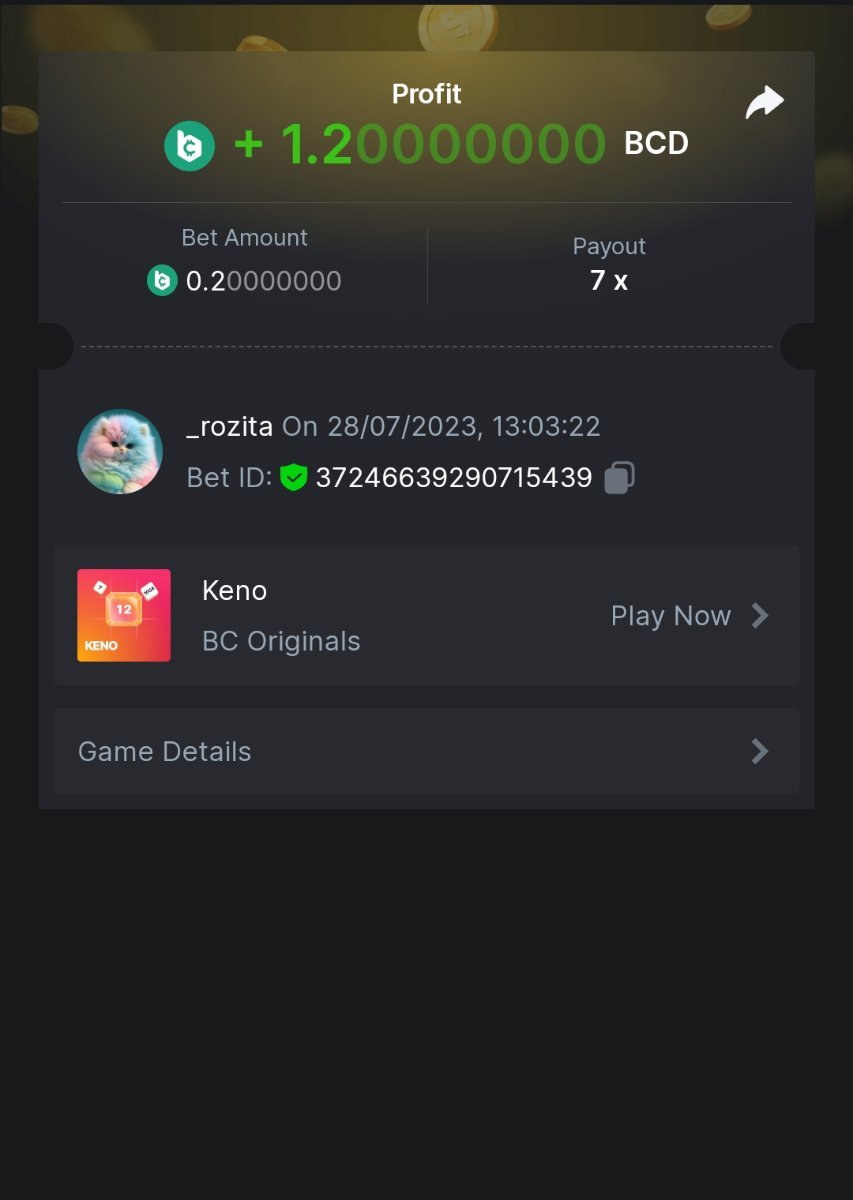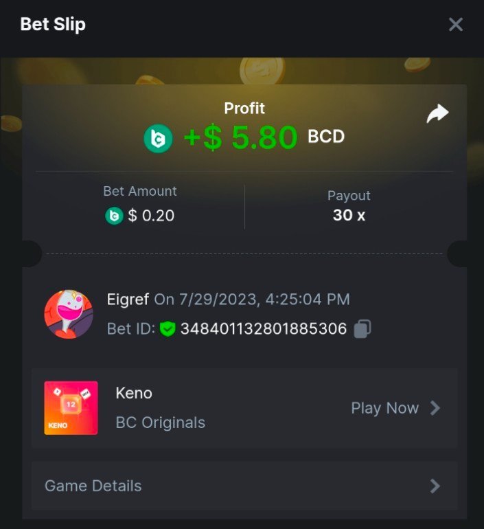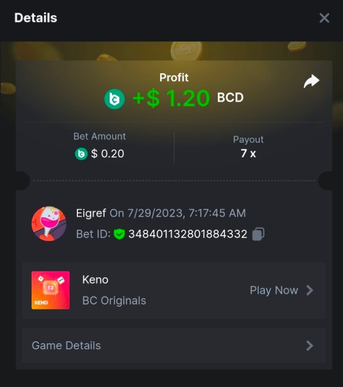 7 x  0.21$   https://bc.game/#/sd/11ESX2I04YR0UR    -  Bet ID: 346870049975304818