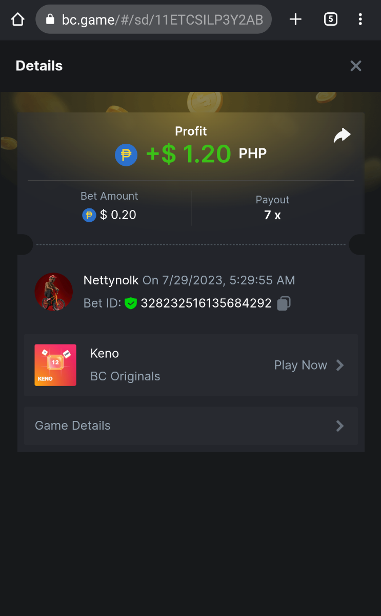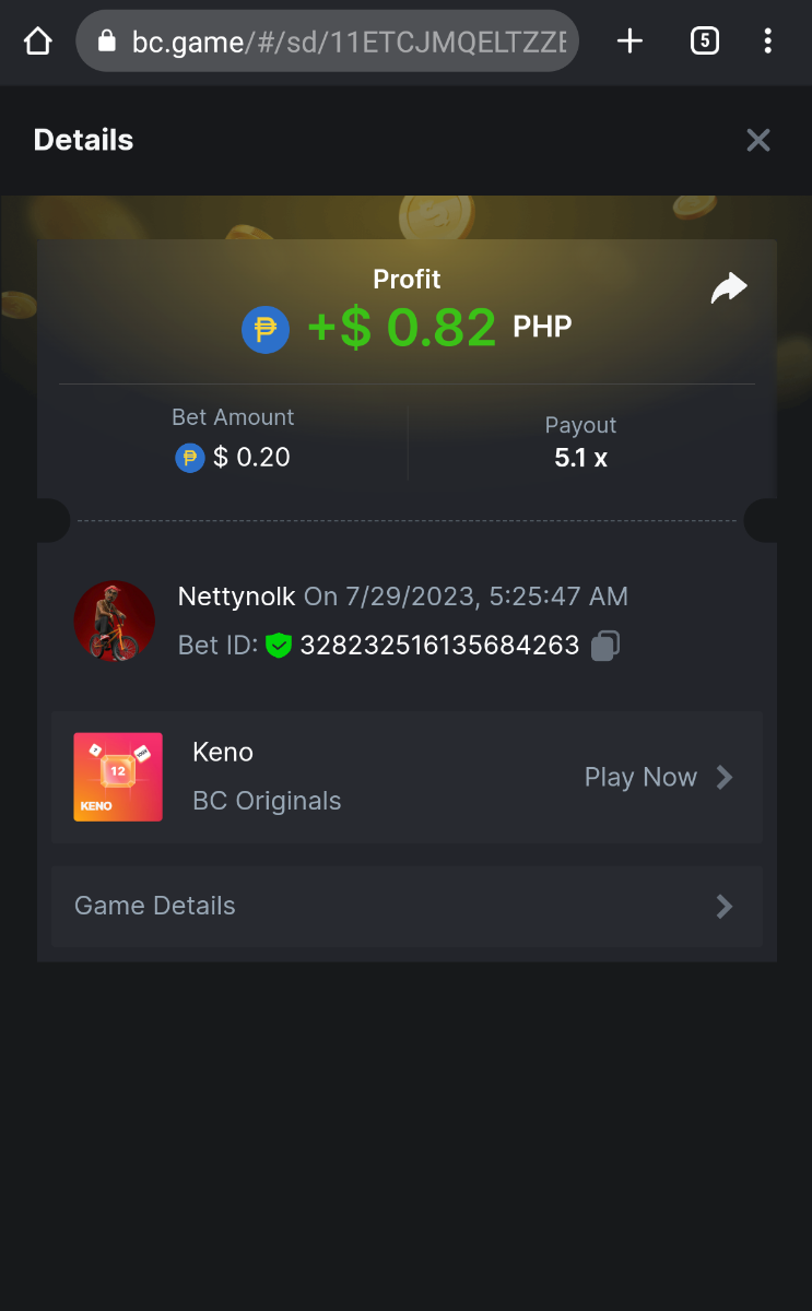 5.1 x 0.21$  https://bc.game/#/sd/11ET217U36WCNN -  Bet ID:346870049975305608