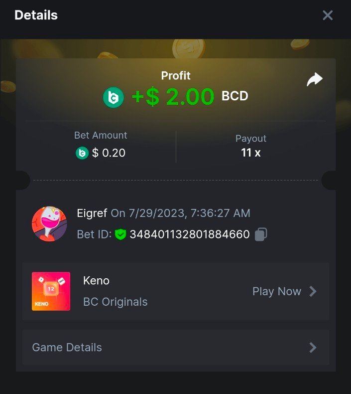 11 x  1.67$   https://bc.game/#/sd/11ESXR1RWYSDN7 -  Bet ID: 346870049975304957