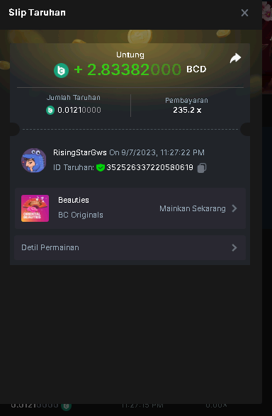 1st place . . . .  7$ BCD  - RisingStarGws - 235.2x