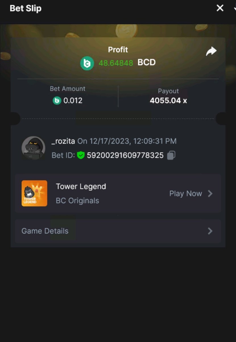 Moderator Giandreas Posted December 17, 2023 Moderator Share Posted December 17, 2023 Read Carefully Before Start To Hunt Forum Daily Challenges #451Hunt : Tower Legend Win the highest pay out Min Payout : x13 Min Level 10 ️Duration Starting : Now End time : 23.59 UTC Time How to Join? Make screenshot + paste your bet link + UID or Profile link Any coin, with min bet 0.01 USD is allowed (jb/bb/bcl not allowed) Reward Prizes 1st Place.....$7 BCD 2nd Place.....$5 BCD 3rd Place.....$4 BCD 4th Place.....$3 BCD 5th Place.....$2 BCD 🏵 Winners will be announcing next day after Roll Point! Link to comment Share on other sites More sharing options...