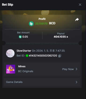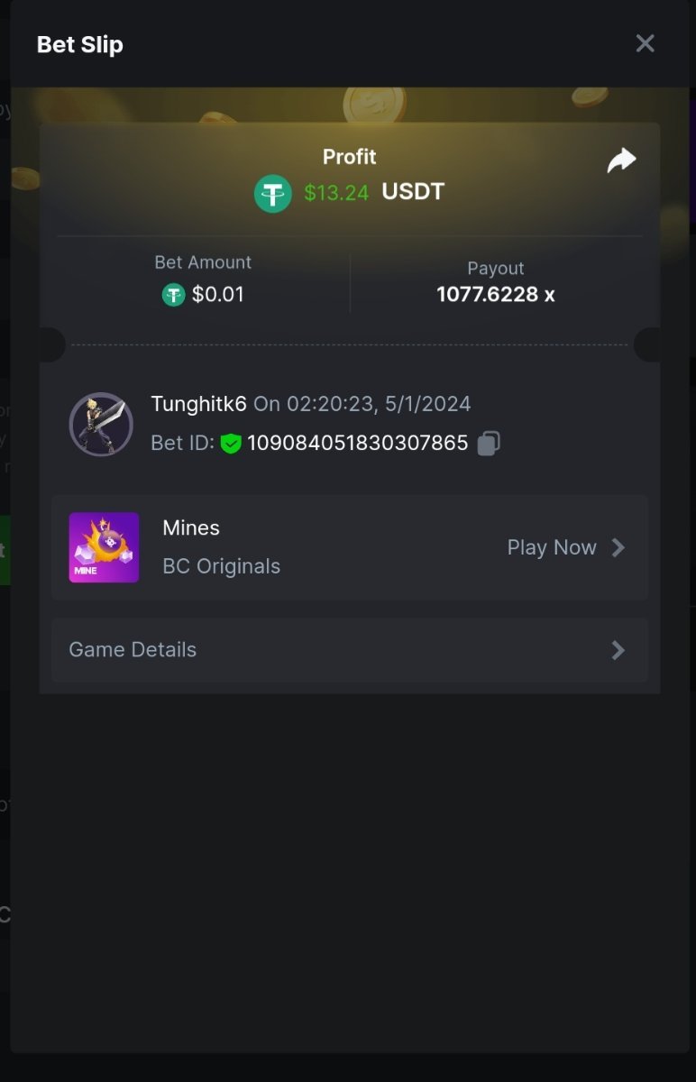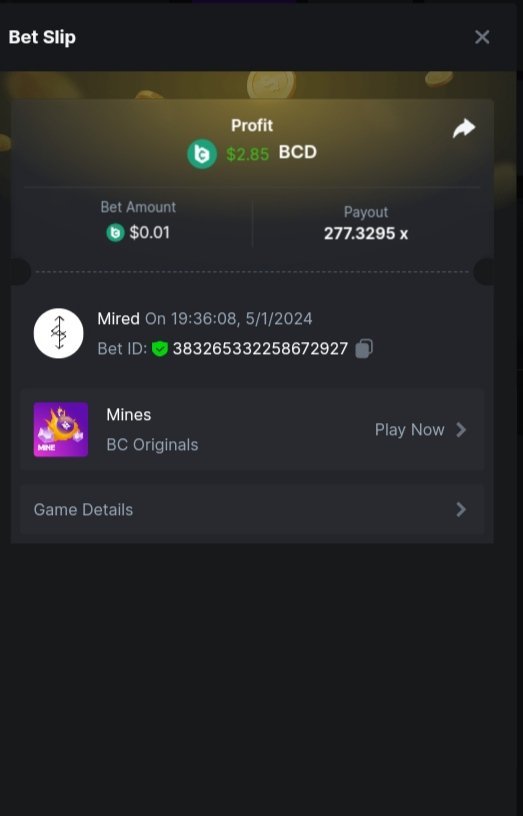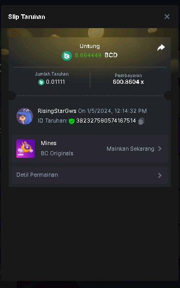 Moderator Giandreas Posted January 5, 2024 Moderator Share Posted January 5, 2024 Read Carefully Before Start To Hunt Forum Daily Challenges #470Hunt : Mines Win the highest pay out Min Payout : 20x Min Level 10️Duration Starting : Now End time : 23.59 UTC Time How to Join? Make screenshot + paste your bet link + UID or Profile link Any coin, with min bet 0.01 USD is allowed (jb/bb/bcl not allowed)Reward Prizes 1st Place.....$7 BCD 2nd Place.....$5 BCD 3rd Place.....$4 BCD 4th Place.....$3 BCD 5th Place.....$2 BCD 🏵 Winners will be announcing next day after Roll Point! 1 Link to comment Share on other sites More sharing options...