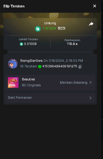 3rd place . . . .  4$ BCD  - RisingStarGws - 116.8x  1.16