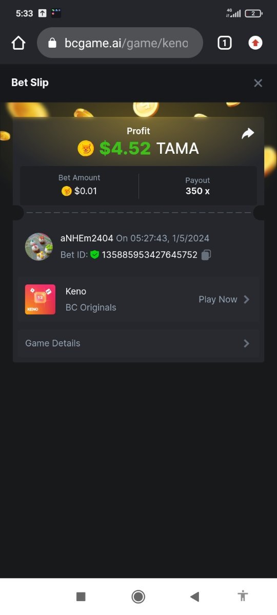 Moderator Giandreas Posted April 30, 2024 Moderator Share Posted April 30, 2024 Read Carefully Before Start To Hunt Forum Daily Challenges #586Hunt : Keno Win the highest pay out Min Payout : x90 Min Level 10️Duration Starting : Now End time : 23.59 UTC Time How to Join? Make screenshot + paste your bet link + UID or Profile link Any coin, with min bet 0.01 USD is allowed (jb/bb/bcl not allowed)Reward Prizes 1st Place.....$7 BCD 2nd Place.....$5 BCD 3rd Place.....$4 BCD 4th Place.....$3 BCD 5th Place.....$2 BCD 🏵 Winners will be announcing next day after Roll Point! 1 Link to comment Share on other sites More sharing options...