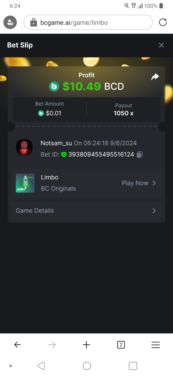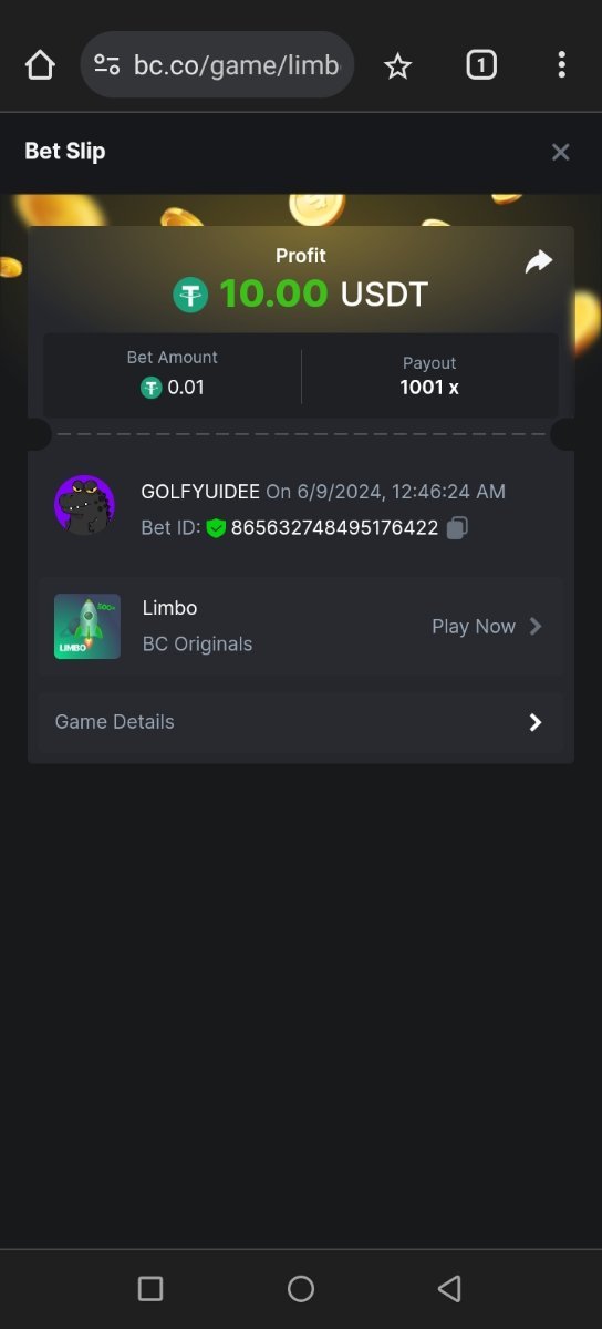 Moderator Giandreas Posted June 8, 2024 Moderator Share Posted June 8, 2024 Read Carefully Before Start To Hunt Forum Daily Challenges #625Hunt : Limbo Win the highest pay out Min Payout : 20x Min Level 10 ️Duration Starting : Now End time : 23.59 UTC Time How to Join? Make screenshot + paste your bet link + UID or Profile link Any coin, with min bet 0.01 USD is allowed (jb/bb/bcl not allowed) Reward Prizes 1st Place.....$7 BCD 2nd Place.....$5 BCD 3rd Place.....$4 BCD 4th Place.....$3 BCD 5th Place.....$2 BCD 🏵 Winners will be announcing next day after Roll Point! Link to comment Share on other sites More sharing options...