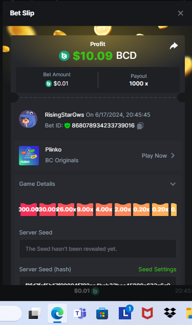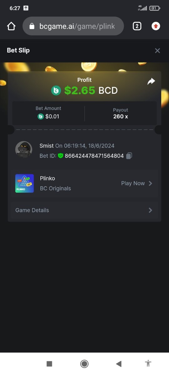 Moderator Giandreas Posted June 17, 2024 Moderator Share Posted June 17, 2024 Read Carefully Before Start To Hunt Forum Daily Challenges #634Hunt : Plinko Win the highest pay out Min Payout : 29x high row Min Level 10 ️Duration Starting : Now End time : 23.59 UTC Time How to Join? Make screenshot + paste your bet link + UID or Profile link Any coin, with min bet 0.01 USD is allowed (jb/bb/bcl not allowed) Reward Prizes 1st Place.....$7 BCD 2nd Place.....$5 BCD 3rd Place.....$4 BCD 4th Place.....$3 BCD 5th Place.....$2 BCD 🏵 Winners will be announcing next day after Roll Point! 1 Link to comment Share on other sites More sharing options...