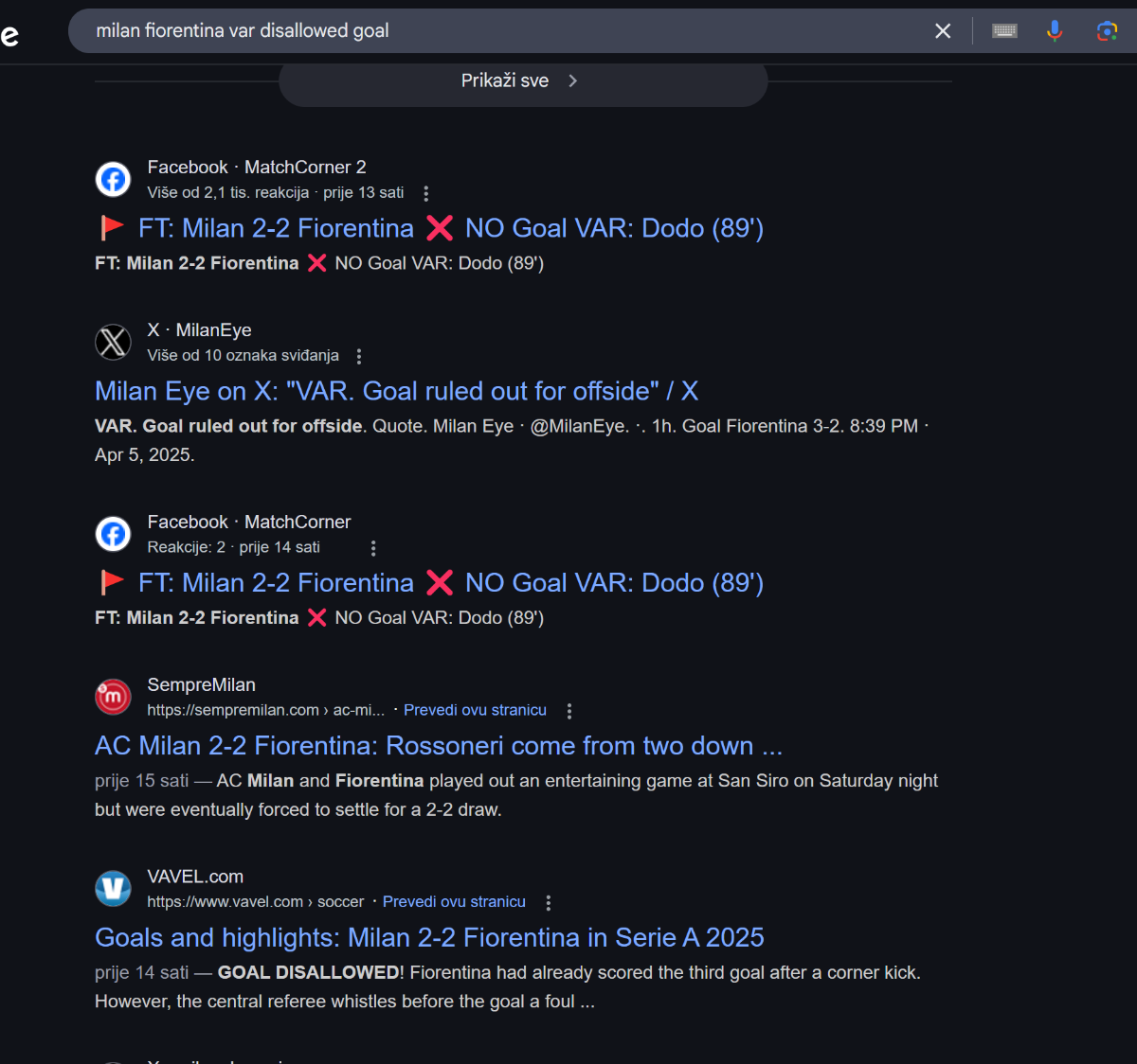 This directly contradicts what is stated on official websites, all of which confirm that a VAR intervention took place. I also personally watched the match and clearly saw the VAR review and goal disallowance.