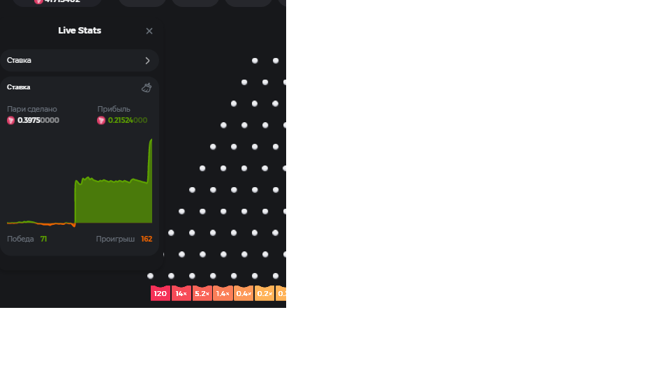 я играю со средним и высоким риском начиная с 8 кеглей. постоянно чередую каждые 20-30 ударов вне зависимости от того, что выиграет я или нет ... на моменте смены сложности также увеличиваю количество колышков на 1 шт ... что касается денежной ставки то сдесь у каждого свой минимум и максимум ... схема такая - начинаю с минимальной ставки 3 удара, после умножаю в 4 раза делаю 3 хода и делю на 2 оставляю сумму до смены сложности .... шарики пускаю сначало 1 удар, когда дойдет до середины то сразу 2 вместе запускаю и дальше когда они примерно на середина поля опять 1 шарик .... так постоянно чередую ... игру продолжаю пока не дойду до конца .... вы изначально должны решить какой профит вы хотите .... такая схемой игры я создаю колебание в ставках и балансе...таким образом шары имеют хороший расброс и получаются хорошие умножения !!) жди хороший удр !!!! по такой схеме постепенно постепенно повышаться, главное вовремя и забрать выйгрыш, ... и всегда играй в ручном режиме !!! ... удачи и хорошего выйгрыша)!