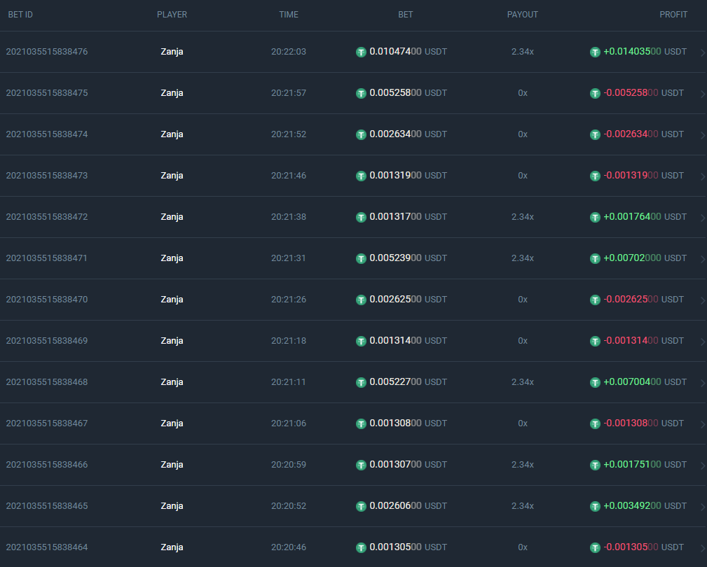 Zanja Posted September 21, 2020 Share Posted September 21, 2020 This is not a strategy for winning big and fast (probably). I'm new to this site and have only been here for a few weeks. I'm a student, so I can't really afford to deposit a lot of money. The only deposits I've made is what I have earned through cctip on twitter. For me this means that I'm trying to make the most of what little coins I have, and because of that I've been trying to work out a system that allows me to win a little and gain VIP levels without it costing too much. Yesterday I came up with a system that seems to be working fairly well. Granted that I have only been trying it for 2 days now. It's basically an inverted martingale. Yesterday I started with 0.3 USDT, and the betting goes like this. Start off with max bet (but don't roll!). Then reduce the bet with half 10 times. It'll look like this 0.3 0.15 0.075 0.0375 0.01875 0.009375 0.004688 0.002344 0.001172 0.000586 0.000293 <<== This will be your first bet Yesterday I used x2.34 and today I tried x2.25. Personally I think betting x2.25 worked better. So you bet 0.000293 x2.25 and lets say you lose, you will have 0.299707 left. Once again start at the max bet (0.299707) and this time reduce the bet with half 9 times. Like this 0.299707 0.149854 0.074927 0.037464 0.018732 0.009366 0.004683 0.002342 0.001171 0.000586 <<== This will be your second bet You make this second bet at 0.000586 x2.25, and lets say you win this time then you will make 0.00732 profit and you will now have 0.307027 Now that you've won, you start once again from max bet and reduce the bet by half 10 times. Like this 0.307027 0.153514 0.076757 0.038379 0.019190 0.009595 0.004798 0.002399 0.001200 0.000600 0.000300 <<== This is your next bet You make the bet 0.000300 at x2.25 and lets say you win now, you will get a profit at 0.000375 which makes your total 0.307402. Now because you won at your first bet, your next bet will once again be your total (0.307402) reduced by half 10 times (so the bet will be 0.000301) Basically every time you lose you divide your max bet by half one less time, and every time you win you go back to dived your max bet by half 10 times. Obviously the more you win the higher your bets will become. When I started yesterday and my max bet was 0.3 my base bet was 0.000293. Today I got 2.5 USDT which makes my base bet 0.002442. The advantage of this strategy compared to the martingale is the exponential growth of the bets in martingale. If you catch an unlucky streak you might not have the funds to continue betting. I've also made a habit of changing the seed fairly often, especially if I win 3-5 times in a row. I assume you can go higher than x2.25, but if you do I would advice that you also divide your max bet with more than 10 times. I hope this expanation is at least clear enough. If not, feel free to ask and I'll try to clarify. Here's some screenshots from yesterday and today I'm a psychology student from Sweden. I'm here to analyze your bad decisions. Link to comment Share on other sites More sharing options...