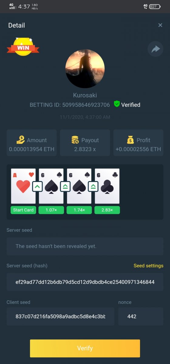 • Take a screenshot displaying the round detail like so and send a reply to this thread with it: