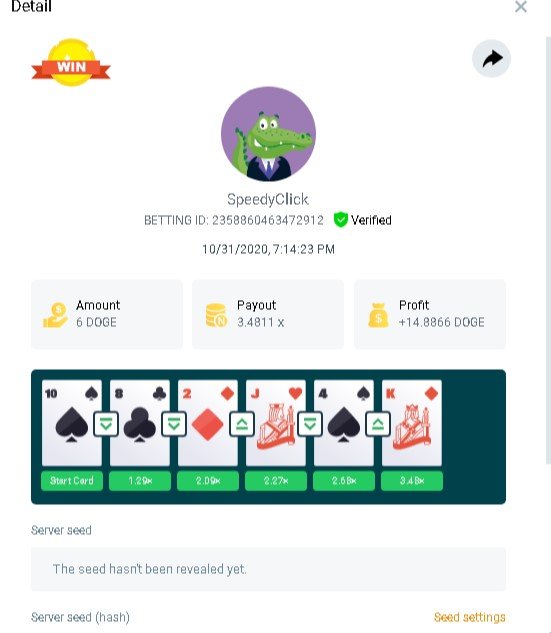 • If you skip, only the 1st starting skipped 6 card counts. You must play the other ones in order for them to qualify. Should you skip and a 6 comes out after the 1st one, it doesn't count unless you actually bet hi/low on that card.