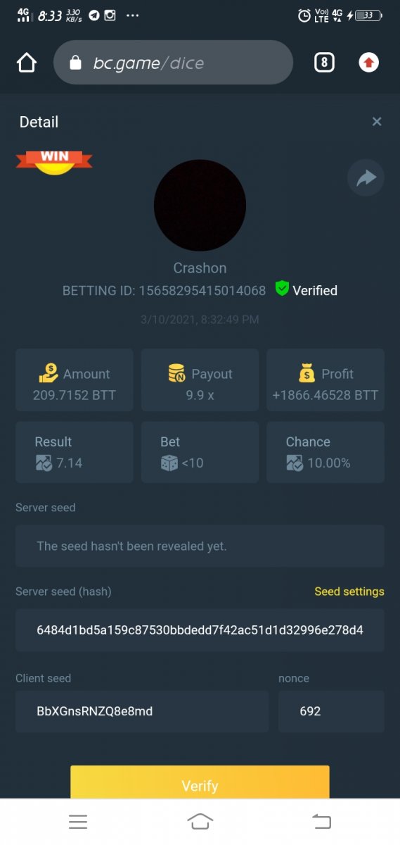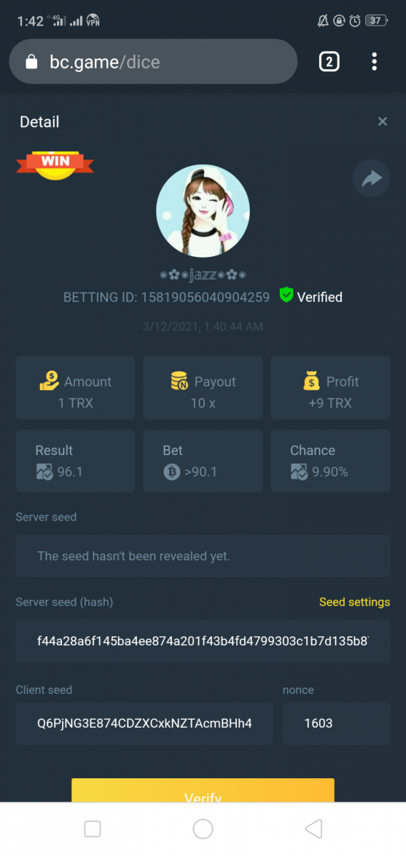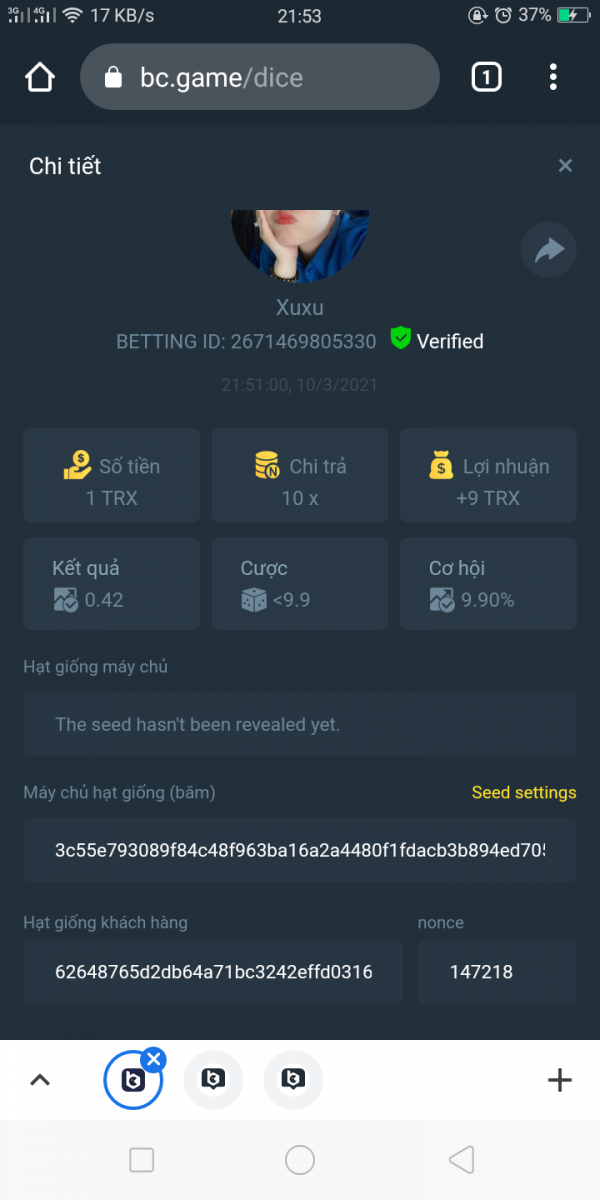 Admin BC_Jack Posted March 10, 2021 Admin Share Posted March 10, 2021 Starts: 14:00, March 10th GMT Ends: 14:00, March 12th GMT We’re excited to announce that we have three new coins available now at BC.Game !! And enjoy it more we are hosting 2 days contest where we will be giving 3 lucky winners $150 worth of new coins! Read on below to find out how you can win! What's the Challenge? Win 2 or more consecutive bets with 10x (win chance 9.9%) on Classic Dice. Minimum Bet Amount $0.05 equivalent Eligible Coins All Coins are eligible as long as they match the minimum bet amount Available Prizes 3 Winners will win $50 worth of BNB/TWT/CAKE each! How to Enter the Challenge Take a screenshot displaying the bet details and send a reply to this thread with it. Must be able to see betting ID so that your bet can be verified. Please do not make multiple posts, just edit your original one if you need to add a new payout or replace a payout with a better qualifying amount. Nonce of all bets has to be consecutive Disclaimer: Multiple accounts not allowed Fake screenshots will be checked and deleted Link to comment Share on other sites More sharing options...