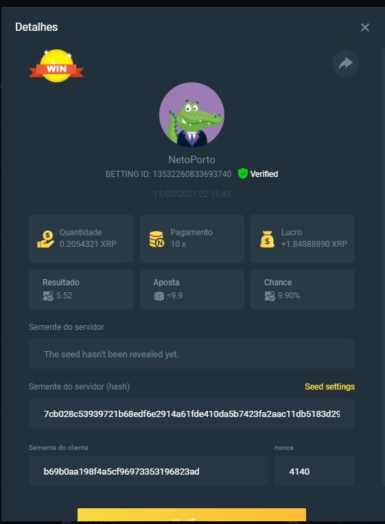 Win 2 or more consecutive bets with 10x (win chance 9.9%) on Classic Dice.