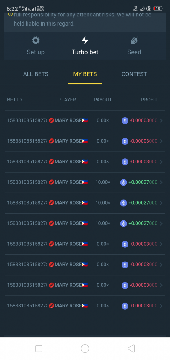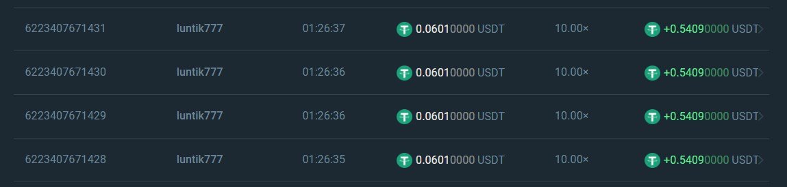 I caught 4 in a row  Amount : 0.06010000  USDT