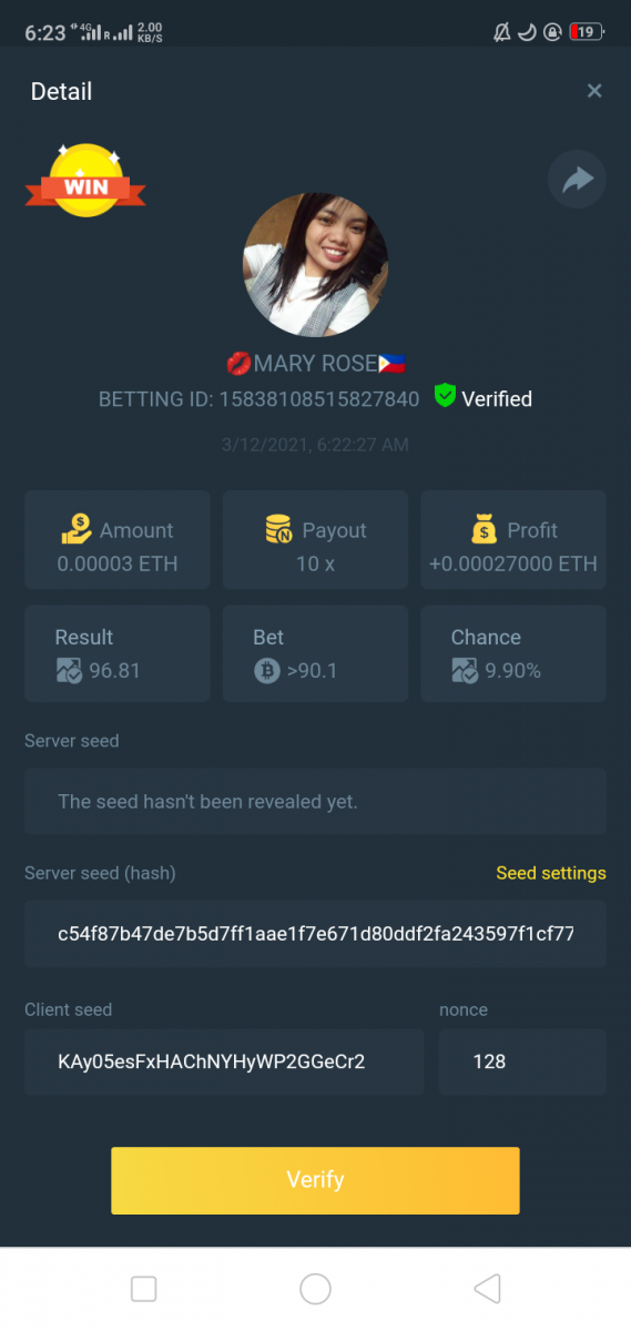Take a screenshot displaying the bet details and send a reply to this thread with it.