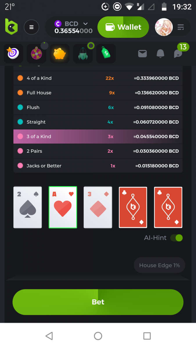 1- BCD is great addition ... Something new and valuable to earn  while playing or wagering any crypto...