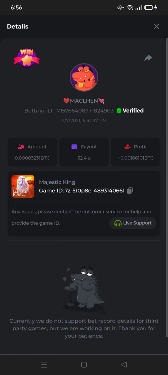 Mavrick951 Posted November 8, 2021 Share Posted November 8, 2021 On 11/2/2021 at 1:37 PM, BCGame_Joe said: Starts: 2, November 20:00 GMTEnds: 9, November 20:00 GMT Welcome back, this week we have a Spinomenal slot event, with a huge $4,000 prize pool! The event is simple - get the highest possible multiplier you can on the slots listed below! The top 3 highest multipliers posted for each slot will win one of the ranked prizes! To sweeten the treats a little further, anyone that completes the side bounty will receive a share of $400(details further down). Eligible Games Get the highest multiplier on any (or all) of the 4 slots below Book of Demi Gods III Majestic King Joker Win Demi Gods III Each player can only win 1 prize per slot, if a player submits more than 1 entry for the same slot, only the highest multiplier will count. Can I win a prize for each of the slots? YES - you can win one prize on each of the 4 slots listed + the bounty prize. Minimum VIP Tier Must be VIP08 or higher in order to enter this challenge. Minimum Bet Size Book of Demi Gods III - $0.20 Majestic King- $0.25 Joker Win - $0.20 Demi Gods III - $0.30 Eligible Coins All coins are eligible (excluding JB) Available Prizes Book of Demi Gods III - 1st place $500 2nd place.$250 3rd place$150 Majestic King - 1st place$500 2nd place$250 3rd place$150 Joker Win - 1st place -$500 2nd place$250 3rd place$150 Demi Gods III - 1st place$500 2nd place$250 3rd place$150 50x BOUNTY - Post a bet that shows EXACTLY 50x payout on any of the 4 slots within the timeframe of this challenge and receive a share of a $400! If nobody gets exactly 50x the person/s closest to 50x will win this bounty! How to Enter To enter, copy the bet ID of the bet you'd like to submit Once you've copied it, post it as a reply to this thread like so: Betting ID: 1708854428417660423 In the same post, upload a screenshot of your win by clicking the game ID WITH VIEW IN USD mode ENABLED (accessible at the bottom of dropdown menu for your wallet up top. This way, we can ensure that your bet indeed met the minimum requirement at the time of placing it: Example post - Betting ID: 1715345879721985408 Good Luck Everyone! Heres one book for demi gods 3 EDIT: make that 2 Betting ID: 1715884076127259143 Betting ID: 1715884822680596352 Link to comment Share on other sites More sharing options...