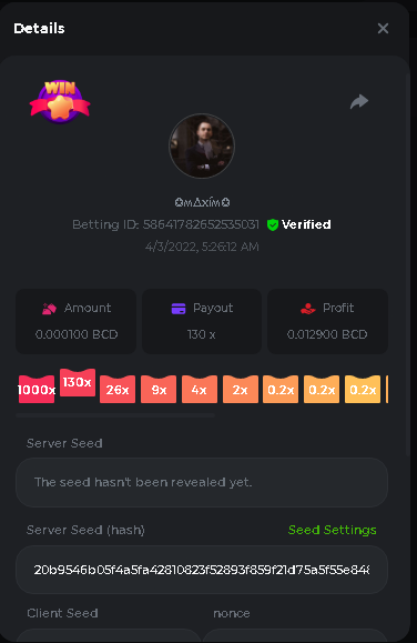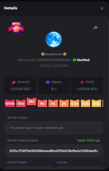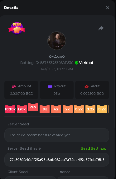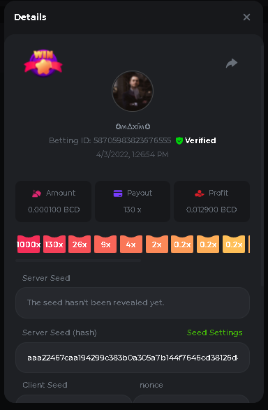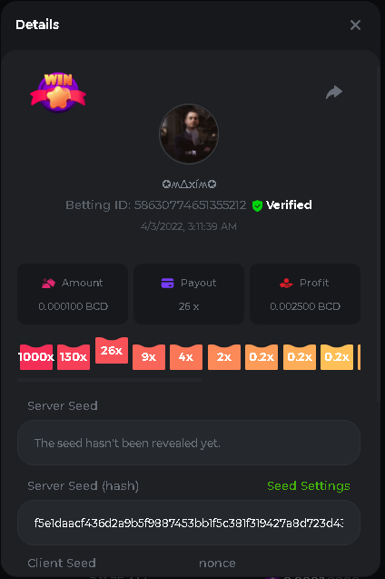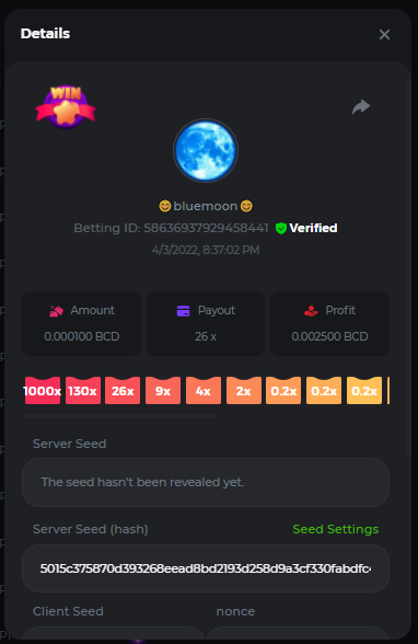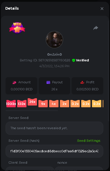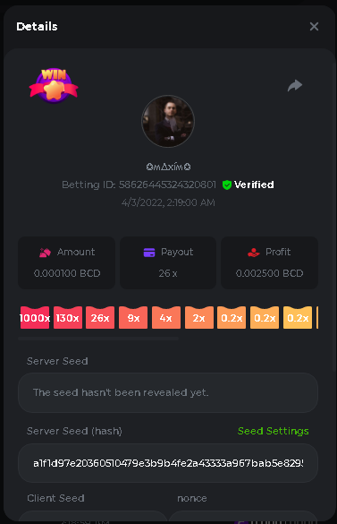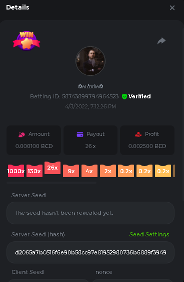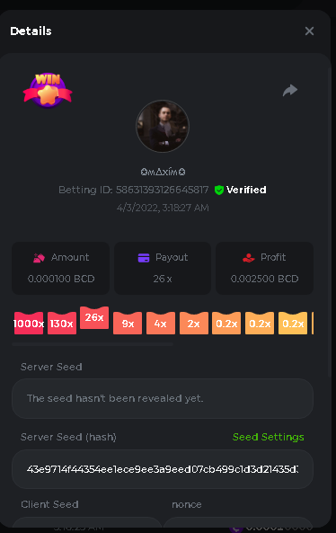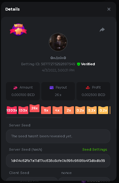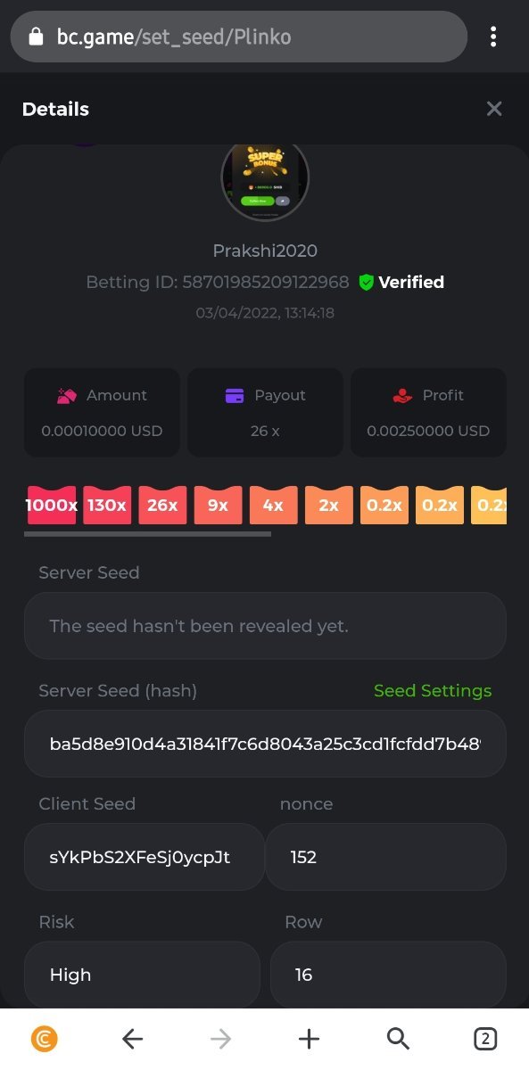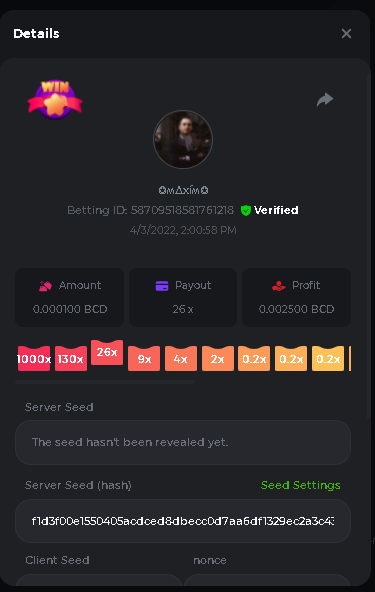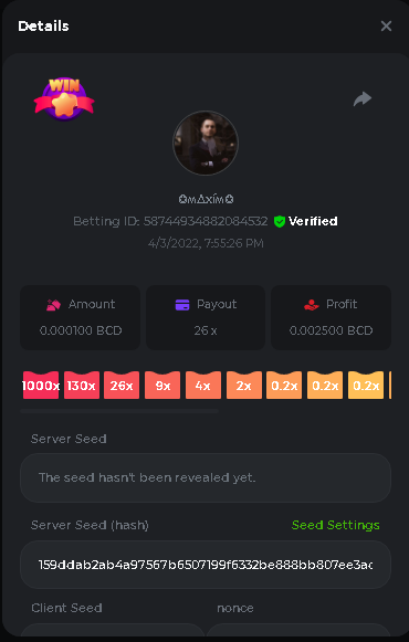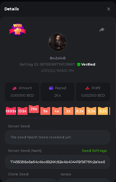 Event Team BCGame_Maxim Posted April 2, 2022 Event Team Share Posted April 2, 2022 BC Profile : https://bc.game/user/profile/2008867 [My Name not updating on forum ] Limbo 2000x = 2 Point Plinko 26x = 121 x 1 = 121 Points Plinko 130x = 18 x 7 = 126 Points Plinko 1000x = 3 x 10 = 30 Points Total = 279 Points https://bc.game/sd/?sd=10HMV099U89R83 https://bc.game/sd/?sd=10HMVUJVQL60PF https://bc.game/sd/?sd=10HMWDJIN8DN9V https://bc.game/sd/?sd=10HMWLM0ENQOLV https://bc.game/sd/?sd=10HMWT2C63O3DF https://bc.game/sd/?sd=10HMX16KP3YYOJ https://bc.game/sd/?sd=10HMX9ZY2GITQR https://bc.game/sd/?sd=10HMXJ4QRR6OSZ https://bc.game/sd/?sd=10HMXVP1UA7XG3 https://bc.game/sd/?sd=10HMY5S8JBCPAR 130x Plinko https://bc.game/sd/?sd=10HMYCLEZN2P03 https://bc.game/sd/?sd=10HMZ48EXJR28J https://bc.game/sd/?sd=10HMZDJEIRCM4Z https://bc.game/sd/?sd=10HMZM7EAJMZ9V https://bc.game/sd/?sd=10HMZT3AQ4ZNKJ Plinko- 130x https://bc.game/sd/?sd=10HMZYAENOWS9F https://bc.game/sd/?sd=10HN02HHARQN83 https://bc.game/sd/?sd=10HN0BJN21AQS3 https://bc.game/sd/?sd=10HN0IBWWC9VDF https://bc.game/sd/?sd=10HN0Z0OHFFAQB https://bc.game/sd/?sd=10HN1C9UFBWJKJ https://bc.game/sd/?sd=10HN1FU9X2SH03 https://bc.game/sd/?sd=10HN1LH3YEB8R7 https://bc.game/sd/?sd=10HN1TPUHD6YOJ https://bc.game/sd/?sd=10HN1Y55WK6TCJ https://bc.game/sd/?sd=10HN292WYUHWYB Plinko-130x https://bc.game/sd/?sd=10HN2ENVY81WK3 https://bc.game/sd/?sd=10HN2SV3QUPIC3 https://bc.game/sd/?sd=10HN2WTCI8K2KZ https://bc.game/sd/?sd=10HN30904JDES3 https://bc.game/sd/?sd=10HN3AZYMI0E8J https://bc.game/sd/?sd=10HN4K9RMD4BV7 https://bc.game/sd/?sd=10HN57R2MUSMC3 https://bc.game/sd/?sd=10HN5WIE1XR503 https://bc.game/sd/?sd=10HN6KCSR8N95F https://bc.game/sd/?sd=10HN6S682AXLOZ Plinko-130x https://bc.game/sd/?sd=10HN7HZ3QIRP5F https://bc.game/sd/?sd=10HN7L7LU1BV2R https://bc.game/sd/?sd=10HN89KTDX3HUB https://bc.game/sd/?sd=10HN994FWQV3TF Plinko-130x https://bc.game/sd/?sd=10HNA40IUSMDQR https://bc.game/sd/?sd=10HNAA4JGDF5LF https://bc.game/sd/?sd=10HNAD0BG2U9SJ https://bc.game/sd/?sd=10HNAG3EZC55HV https://bc.game/sd/?sd=10HNAKHSXAN9QR https://bc.game/sd/?sd=10HNARO51J23O3 Plinko-130x https://bc.game/sd/?sd=10HO2VCGZ75KIB https://bc.game/sd/?sd=10HO31ND4L9V6B https://bc.game/sd/?sd=10HO343E8S7O5V Plinko-130x https://bc.game/sd/?sd=10HO3O2SNVO2KZ https://bc.game/sd/?sd=10HO3SWFIILK43 https://bc.game/sd/?sd=10HO43ZMHL81LF https://bc.game/sd/?sd=10HO46YX9L0G0J https://bc.game/sd/?sd=10HO4ARQ0PUQDV https://bc.game/sd/?sd=10HO4F5PPD9NV7 https://bc.game/sd/?sd=10HO4HR1HCBTOZ https://bc.game/sd/?sd=10HO4K89322T5F Plinko-130x https://bc.game/sd/?sd=10HO4OKBHZV4ER https://bc.game/sd/?sd=10HO59IGVB7Y1F https://bc.game/sd/?sd=10HO5DJJWBPGCZ https://bc.game/sd/?sd=10HO5GWWINUNMB https://bc.game/sd/?sd=10HO5U3ZSMKETV https://bc.game/sd/?sd=10HO6110G8KRV7 https://bc.game/sd/?sd=10HO678DKO0POZ https://bc.game/sd/?sd=10HO6FWW88UQKZ https://bc.game/sd/?sd=10HO6LXNMMPZIR https://bc.game/sd/?sd=10HO6NKJ5D3TOZ https://bc.game/sd/?sd=10HO6VT6XHL7O3 https://bc.game/sd/?sd=10HO71JDL4M2OJ Plinko-130x https://bc.game/sd/?sd=10HO75TGBNBH8Z https://bc.game/sd/?sd=10HO79NAP5VJMB https://bc.game/sd/?sd=10HO7R9R882W43 https://bc.game/sd/?sd=10HO7UII8JLC0J Plinko-1000x https://bc.game/sd/?sd=10HO84GYI4KYDV Plinko-1000x https://bc.game/sd/?sd=10HO8AU8AUG74J https://bc.game/sd/?sd=10HO8O8SKBHNV7 Plinko-130x https://bc.game/sd/?sd=10HO94ZEKSY49F https://bc.game/sd/?sd=10HO9Z2X4F455F https://bc.game/sd/?sd=10HOA28RUAP3WZ https://bc.game/sd/?sd=10HOA4Z4450G0J https://bc.game/sd/?sd=10HOA8ARZPO8PF https://bc.game/sd/?sd=10HOAAJSJQML1V https://bc.game/sd/?sd=10HOAE95XPHFKJ https://bc.game/sd/?sd=10HOAKACLTL3PV Plinko-130x https://bc.game/sd/?sd=10HOAQJDNJBKER Plinko-130x https://bc.game/sd/?sd=10HOAYXR7YQYHF https://bc.game/sd/?sd=10HOB7V4IYWQVN https://bc.game/sd/?sd=10HOBL2RW2WB2R https://bc.game/sd/?sd=10HOBUT5Z45LAR https://bc.game/sd/?sd=10HOBW3HLRDGCZ https://bc.game/sd/?sd=10HOF4QGQJM4GJ https://bc.game/sd/?sd=10HOGCG97AT0K3 Plinko-130x https://bc.game/sd/?sd=10HOGG6JHP01SJ https://bc.game/sd/?sd=10HOH1JN7WJTW3 https://bc.game/sd/?sd=10HOH7ILXBFCB7 https://bc.game/sd/?sd=10HOHHEBQASCUR https://bc.game/sd/?sd=10HOIB0E80URKJ https://bc.game/sd/?sd=10HOIFGBZV7B4J Plinko-130x https://bc.game/sd/?sd=10HOIMGJTU8PW3 https://bc.game/sd/?sd=10HONW6VSJC3DF https://bc.game/sd/?sd=10HOO5VQ3F9FKJ https://bc.game/sd/?sd=10HOOLCJI97THV https://bc.game/sd/?sd=10HOOOK1A7SHLF Plinko-130x https://bc.game/sd/?sd=10HOOU172Q9EDV https://bc.game/sd/?sd=10HOOX6EV55YC3 https://bc.game/sd/?sd=10HOP3ZXXTSX03 https://bc.game/sd/?sd=10HOPACAN64KCZ https://bc.game/sd/?sd=10HOPDGU3UFS43 https://bc.game/sd/?sd=10HOPJO4AHNZ0Z https://bc.game/sd/?sd=10HOPSWNJA239V https://bc.game/sd/?sd=10HOPWEDOAAJ9V https://bc.game/sd/?sd=10HOQ3UQDHY783 Plinko-130x https://bc.game/sd/?sd=10HOQNTV97YXW3 https://bc.game/sd/?sd=10HORN4SWQ0LCJ https://bc.game/sd/?sd=10HORTQ3E7XY4Z https://bc.game/sd/?sd=10HOSK9W0XANF7 https://bc.game/sd/?sd=10HOSNUQVV1F6B Plinko-1000x https://bc.game/sd/?sd=10HOSX2PK5F28J Plinko-130x https://bc.game/sd/?sd=10HOULHX9FGU1F https://bc.game/sd/?sd=10HOUW66W1ANF7 https://bc.game/sd/?sd=10HOV6VNFRBXN7 https://bc.game/sd/?sd=10HOVGGNJCZQ4Z https://bc.game/sd/?sd=10HOW4N7L21G5V https://bc.game/sd/?sd=10HOWOMVVND637 https://bc.game/sd/?sd=10HOWTV42YBJ0Z https://bc.game/sd/?sd=10HOWZKCAO9ES3 https://bc.game/sd/?sd=10HOZ7DLY43M6R https://bc.game/sd/?sd=10HOZCNJ1DYPEB https://bc.game/sd/?sd=10HOZIN5QEOS9F https://bc.game/sd/?sd=10HOZRDT7YLJWZ https://bc.game/sd/?sd=10HOZWXR98PZ4J https://bc.game/sd/?sd=10HP091AQUA7MB https://bc.game/sd/?sd=10HP0BQVNOTYXF https://bc.game/sd/?sd=10HP16NTRPQL8Z https://bc.game/sd/?sd=10HP19CNZU4PAR Plinko-130x https://bc.game/sd/?sd=10HP1J6P5IAXOZ https://bc.game/sd/?sd=10HP2J75KHKR2R https://bc.game/sd/?sd=10HP2LZZQ9ECCZ https://bc.game/sd/?sd=10HP2QCAO5I6FN https://bc.game/sd/?sd=10HP4QM5RLN11V https://bc.game/sd/?sd=10HP534ZZRRH8Z https://bc.game/sd/?sd=10HP57HKDJZ6DV https://bc.game/sd/?sd=10HP5NR3OIC103 h