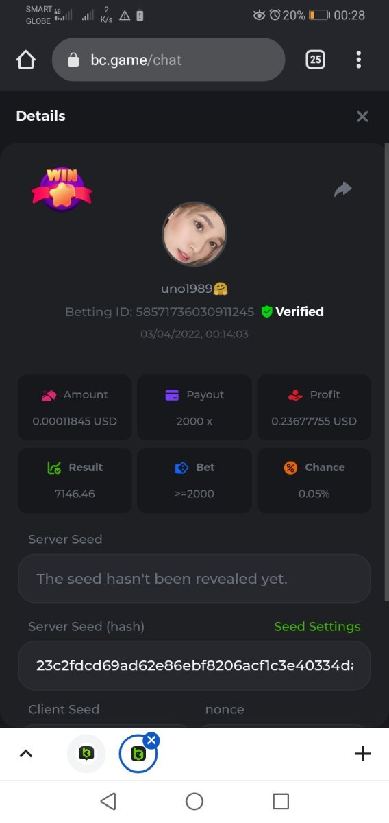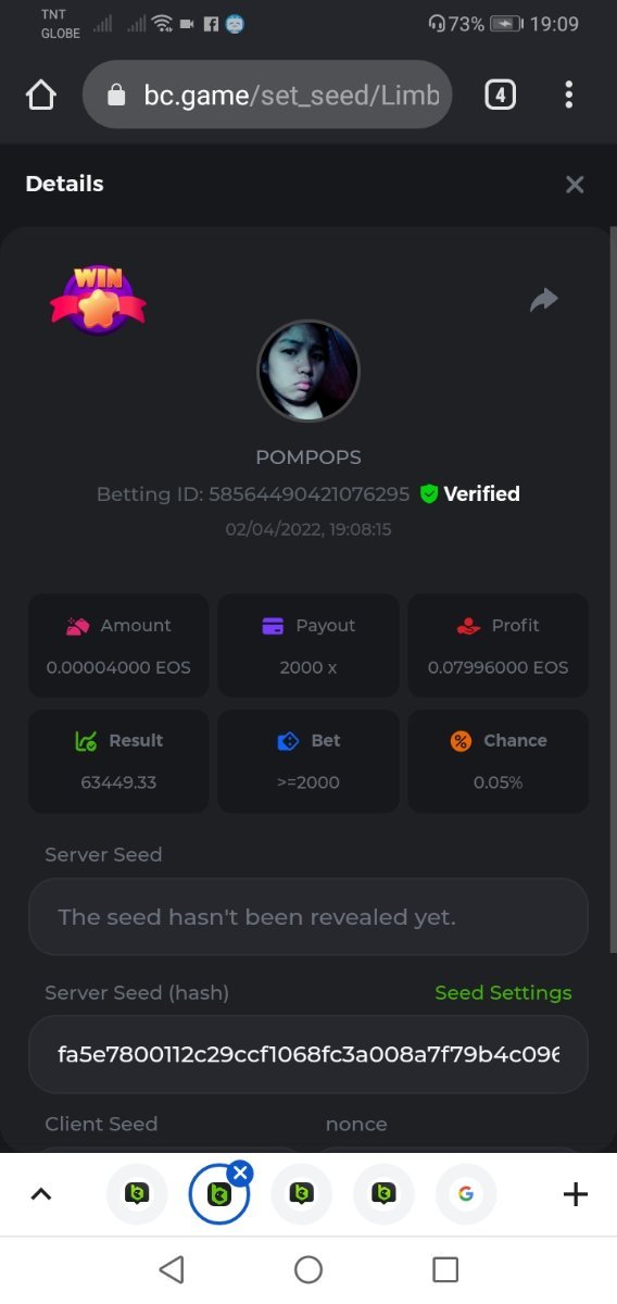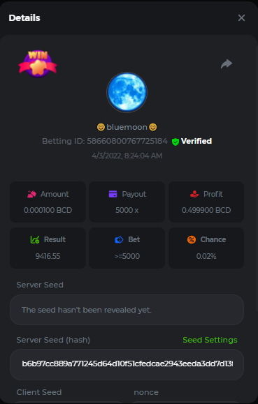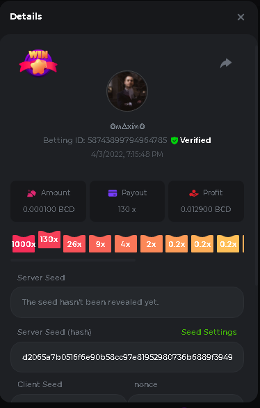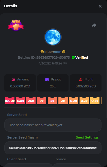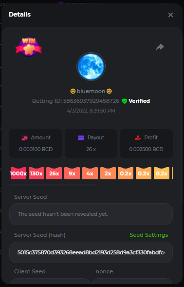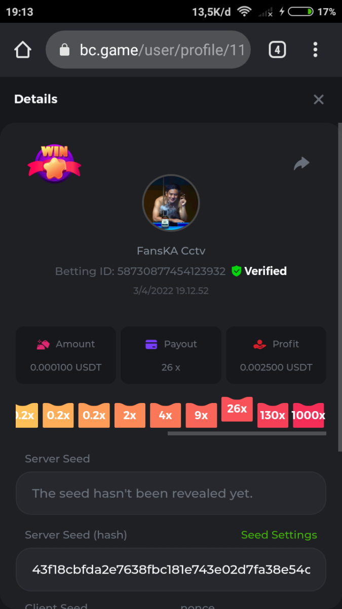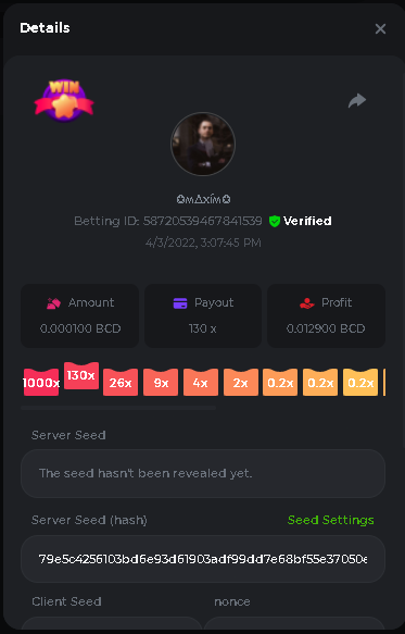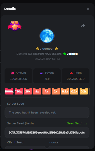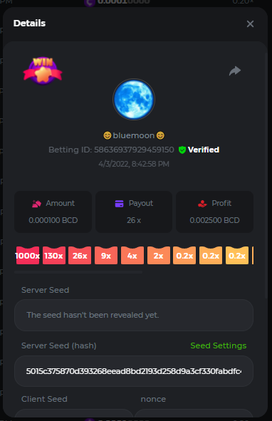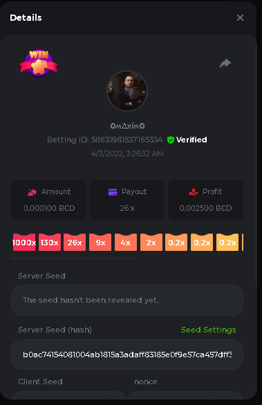 Event Team BCGame_Maxim Posted April 2, 2022 Event Team Share Posted April 2, 2022 BC Profile : https://bc.game/user/profile/2008867 [My Name not updating on forum ] Limbo 2000x = 2 Point Plinko 26x = 121 x 1 = 121 Points Plinko 130x = 18 x 7 = 126 Points Plinko 1000x = 3 x 10 = 30 Points Total = 279 Points https://bc.game/sd/?sd=10HMV099U89R83 https://bc.game/sd/?sd=10HMVUJVQL60PF https://bc.game/sd/?sd=10HMWDJIN8DN9V https://bc.game/sd/?sd=10HMWLM0ENQOLV https://bc.game/sd/?sd=10HMWT2C63O3DF https://bc.game/sd/?sd=10HMX16KP3YYOJ https://bc.game/sd/?sd=10HMX9ZY2GITQR https://bc.game/sd/?sd=10HMXJ4QRR6OSZ https://bc.game/sd/?sd=10HMXVP1UA7XG3 https://bc.game/sd/?sd=10HMY5S8JBCPAR 130x Plinko https://bc.game/sd/?sd=10HMYCLEZN2P03 https://bc.game/sd/?sd=10HMZ48EXJR28J https://bc.game/sd/?sd=10HMZDJEIRCM4Z https://bc.game/sd/?sd=10HMZM7EAJMZ9V https://bc.game/sd/?sd=10HMZT3AQ4ZNKJ Plinko- 130x https://bc.game/sd/?sd=10HMZYAENOWS9F https://bc.game/sd/?sd=10HN02HHARQN83 https://bc.game/sd/?sd=10HN0BJN21AQS3 https://bc.game/sd/?sd=10HN0IBWWC9VDF https://bc.game/sd/?sd=10HN0Z0OHFFAQB https://bc.game/sd/?sd=10HN1C9UFBWJKJ https://bc.game/sd/?sd=10HN1FU9X2SH03 https://bc.game/sd/?sd=10HN1LH3YEB8R7 https://bc.game/sd/?sd=10HN1TPUHD6YOJ https://bc.game/sd/?sd=10HN1Y55WK6TCJ https://bc.game/sd/?sd=10HN292WYUHWYB Plinko-130x https://bc.game/sd/?sd=10HN2ENVY81WK3 https://bc.game/sd/?sd=10HN2SV3QUPIC3 https://bc.game/sd/?sd=10HN2WTCI8K2KZ https://bc.game/sd/?sd=10HN30904JDES3 https://bc.game/sd/?sd=10HN3AZYMI0E8J https://bc.game/sd/?sd=10HN4K9RMD4BV7 https://bc.game/sd/?sd=10HN57R2MUSMC3 https://bc.game/sd/?sd=10HN5WIE1XR503 https://bc.game/sd/?sd=10HN6KCSR8N95F https://bc.game/sd/?sd=10HN6S682AXLOZ Plinko-130x https://bc.game/sd/?sd=10HN7HZ3QIRP5F https://bc.game/sd/?sd=10HN7L7LU1BV2R https://bc.game/sd/?sd=10HN89KTDX3HUB https://bc.game/sd/?sd=10HN994FWQV3TF Plinko-130x https://bc.game/sd/?sd=10HNA40IUSMDQR https://bc.game/sd/?sd=10HNAA4JGDF5LF https://bc.game/sd/?sd=10HNAD0BG2U9SJ https://bc.game/sd/?sd=10HNAG3EZC55HV https://bc.game/sd/?sd=10HNAKHSXAN9QR https://bc.game/sd/?sd=10HNARO51J23O3 Plinko-130x https://bc.game/sd/?sd=10HO2VCGZ75KIB https://bc.game/sd/?sd=10HO31ND4L9V6B https://bc.game/sd/?sd=10HO343E8S7O5V Plinko-130x https://bc.game/sd/?sd=10HO3O2SNVO2KZ https://bc.game/sd/?sd=10HO3SWFIILK43 https://bc.game/sd/?sd=10HO43ZMHL81LF https://bc.game/sd/?sd=10HO46YX9L0G0J https://bc.game/sd/?sd=10HO4ARQ0PUQDV https://bc.game/sd/?sd=10HO4F5PPD9NV7 https://bc.game/sd/?sd=10HO4HR1HCBTOZ https://bc.game/sd/?sd=10HO4K89322T5F Plinko-130x https://bc.game/sd/?sd=10HO4OKBHZV4ER https://bc.game/sd/?sd=10HO59IGVB7Y1F https://bc.game/sd/?sd=10HO5DJJWBPGCZ https://bc.game/sd/?sd=10HO5GWWINUNMB https://bc.game/sd/?sd=10HO5U3ZSMKETV https://bc.game/sd/?sd=10HO6110G8KRV7 https://bc.game/sd/?sd=10HO678DKO0POZ https://bc.game/sd/?sd=10HO6FWW88UQKZ https://bc.game/sd/?sd=10HO6LXNMMPZIR https://bc.game/sd/?sd=10HO6NKJ5D3TOZ https://bc.game/sd/?sd=10HO6VT6XHL7O3 https://bc.game/sd/?sd=10HO71JDL4M2OJ Plinko-130x https://bc.game/sd/?sd=10HO75TGBNBH8Z https://bc.game/sd/?sd=10HO79NAP5VJMB https://bc.game/sd/?sd=10HO7R9R882W43 https://bc.game/sd/?sd=10HO7UII8JLC0J Plinko-1000x https://bc.game/sd/?sd=10HO84GYI4KYDV Plinko-1000x https://bc.game/sd/?sd=10HO8AU8AUG74J https://bc.game/sd/?sd=10HO8O8SKBHNV7 Plinko-130x https://bc.game/sd/?sd=10HO94ZEKSY49F https://bc.game/sd/?sd=10HO9Z2X4F455F https://bc.game/sd/?sd=10HOA28RUAP3WZ https://bc.game/sd/?sd=10HOA4Z4450G0J https://bc.game/sd/?sd=10HOA8ARZPO8PF https://bc.game/sd/?sd=10HOAAJSJQML1V https://bc.game/sd/?sd=10HOAE95XPHFKJ https://bc.game/sd/?sd=10HOAKACLTL3PV Plinko-130x https://bc.game/sd/?sd=10HOAQJDNJBKER Plinko-130x https://bc.game/sd/?sd=10HOAYXR7YQYHF https://bc.game/sd/?sd=10HOB7V4IYWQVN https://bc.game/sd/?sd=10HOBL2RW2WB2R https://bc.game/sd/?sd=10HOBUT5Z45LAR https://bc.game/sd/?sd=10HOBW3HLRDGCZ https://bc.game/sd/?sd=10HOF4QGQJM4GJ https://bc.game/sd/?sd=10HOGCG97AT0K3 Plinko-130x https://bc.game/sd/?sd=10HOGG6JHP01SJ https://bc.game/sd/?sd=10HOH1JN7WJTW3 https://bc.game/sd/?sd=10HOH7ILXBFCB7 https://bc.game/sd/?sd=10HOHHEBQASCUR https://bc.game/sd/?sd=10HOIB0E80URKJ https://bc.game/sd/?sd=10HOIFGBZV7B4J Plinko-130x https://bc.game/sd/?sd=10HOIMGJTU8PW3 https://bc.game/sd/?sd=10HONW6VSJC3DF https://bc.game/sd/?sd=10HOO5VQ3F9FKJ https://bc.game/sd/?sd=10HOOLCJI97THV https://bc.game/sd/?sd=10HOOOK1A7SHLF Plinko-130x https://bc.game/sd/?sd=10HOOU172Q9EDV https://bc.game/sd/?sd=10HOOX6EV55YC3 https://bc.game/sd/?sd=10HOP3ZXXTSX03 https://bc.game/sd/?sd=10HOPACAN64KCZ https://bc.game/sd/?sd=10HOPDGU3UFS43 https://bc.game/sd/?sd=10HOPJO4AHNZ0Z https://bc.game/sd/?sd=10HOPSWNJA239V https://bc.game/sd/?sd=10HOPWEDOAAJ9V https://bc.game/sd/?sd=10HOQ3UQDHY783 Plinko-130x https://bc.game/sd/?sd=10HOQNTV97YXW3 https://bc.game/sd/?sd=10HORN4SWQ0LCJ https://bc.game/sd/?sd=10HORTQ3E7XY4Z https://bc.game/sd/?sd=10HOSK9W0XANF7 https://bc.game/sd/?sd=10HOSNUQVV1F6B Plinko-1000x https://bc.game/sd/?sd=10HOSX2PK5F28J Plinko-130x https://bc.game/sd/?sd=10HOULHX9FGU1F https://bc.game/sd/?sd=10HOUW66W1ANF7 https://bc.game/sd/?sd=10HOV6VNFRBXN7 https://bc.game/sd/?sd=10HOVGGNJCZQ4Z https://bc.game/sd/?sd=10HOW4N7L21G5V https://bc.game/sd/?sd=10HOWOMVVND637 https://bc.game/sd/?sd=10HOWTV42YBJ0Z https://bc.game/sd/?sd=10HOWZKCAO9ES3 https://bc.game/sd/?sd=10HOZ7DLY43M6R https://bc.game/sd/?sd=10HOZCNJ1DYPEB https://bc.game/sd/?sd=10HOZIN5QEOS9F https://bc.game/sd/?sd=10HOZRDT7YLJWZ https://bc.game/sd/?sd=10HOZWXR98PZ4J https://bc.game/sd/?sd=10HP091AQUA7MB https://bc.game/sd/?sd=10HP0BQVNOTYXF https://bc.game/sd/?sd=10HP16NTRPQL8Z https://bc.game/sd/?sd=10HP19CNZU4PAR Plinko-130x https://bc.game/sd/?sd=10HP1J6P5IAXOZ https://bc.game/sd/?sd=10HP2J75KHKR2R https://bc.game/sd/?sd=10HP2LZZQ9ECCZ https://bc.game/sd/?sd=10HP2QCAO5I6FN https://bc.game/sd/?sd=10HP4QM5RLN11V https://bc.game/sd/?sd=10HP534ZZRRH8Z https://bc.game/sd/?sd=10HP57HKDJZ6DV https://bc.game/sd/?sd=10HP5NR3OIC103 h