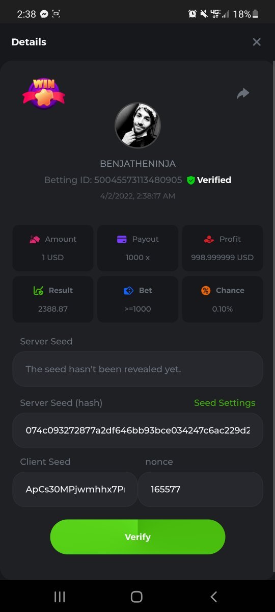 And ended up withdrawing $2k it was a good run.  In just a 2 day span.