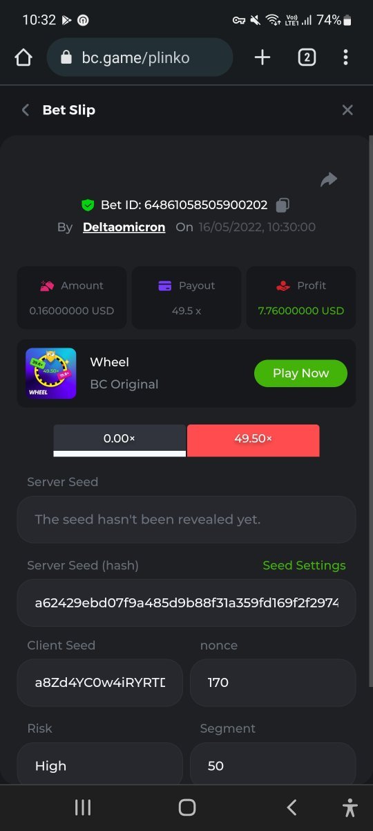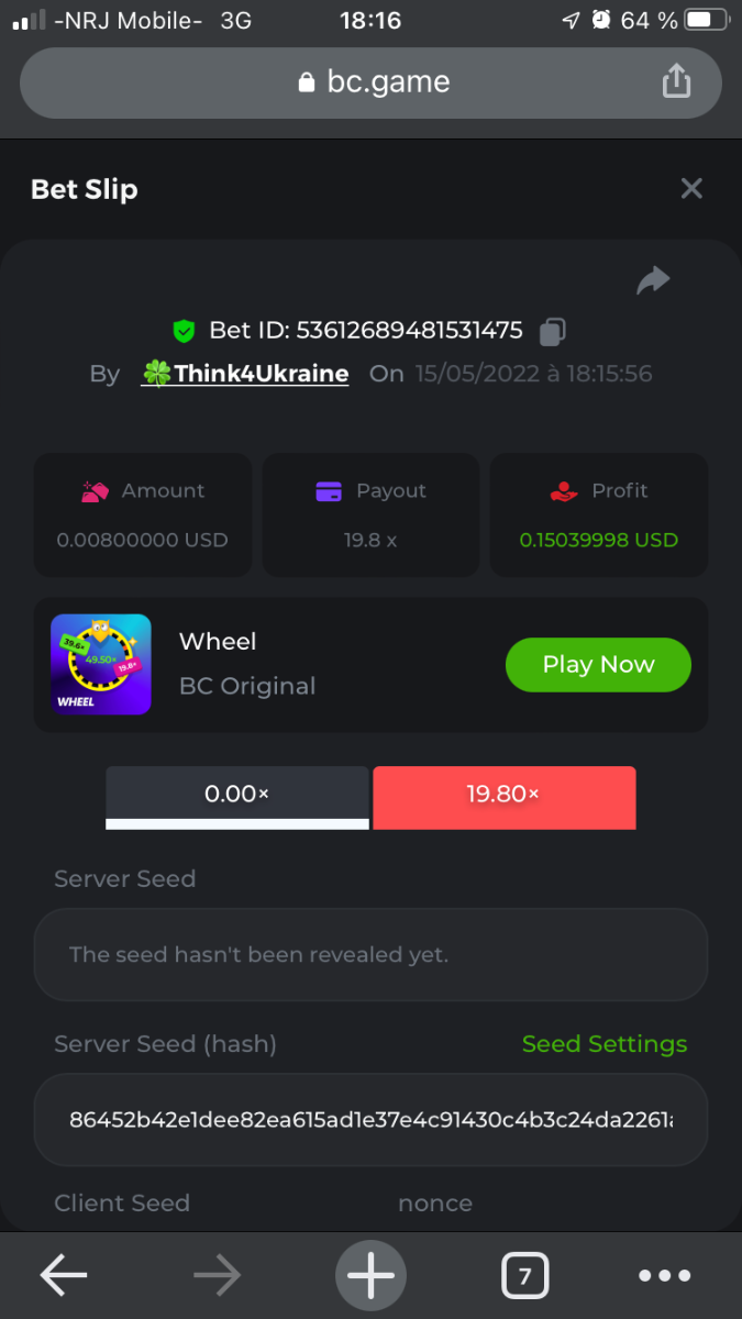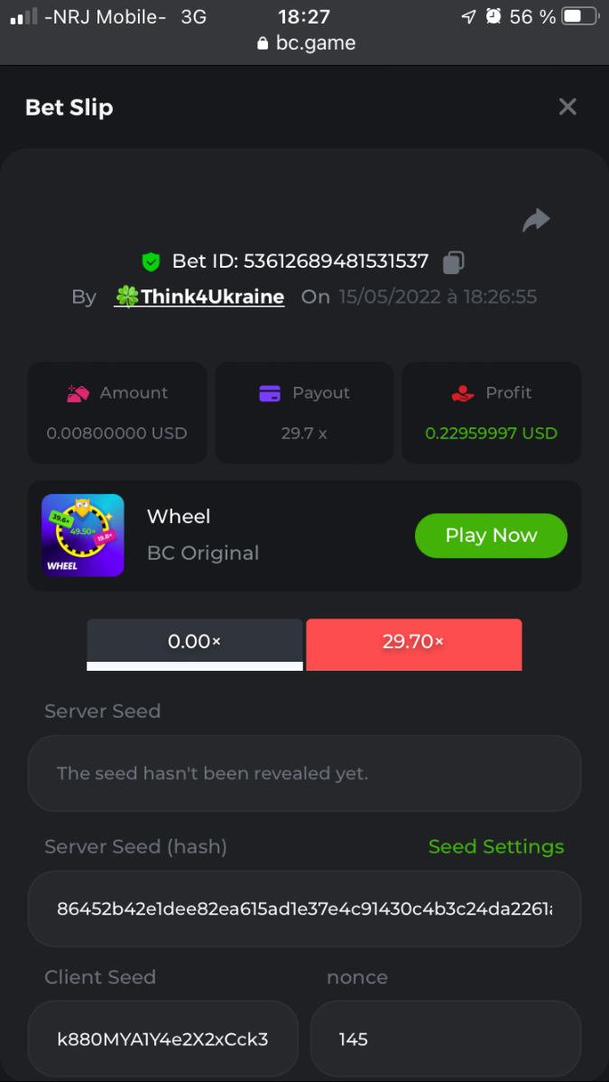 Accédez au jeu pour choisir votre ID de pari, cliquez sur l'icône Partager (↷) puis sur Copier le lien Dans le même message, téléchargez une capture d'écran de votre gain en cliquant sur l'ID du jeu et En mode USD ON