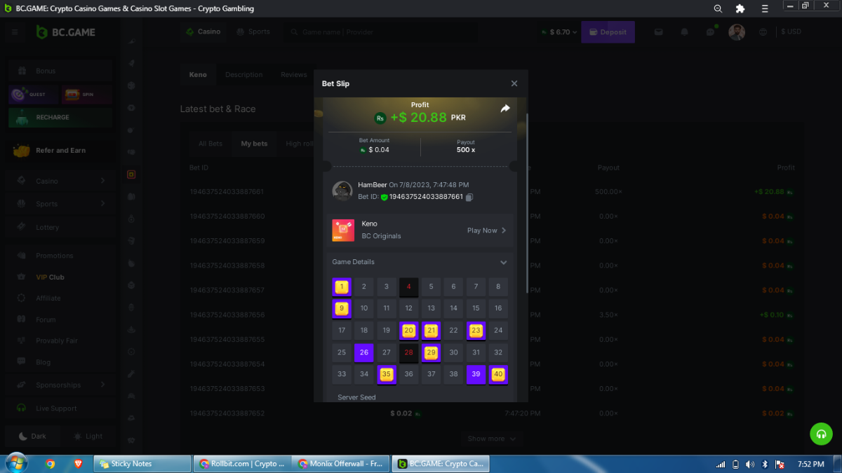 Heymonkey Posted August 12, 2022 Share Posted August 12, 2022 My biggest keno hit. Started from $ 1.63 of bcd given to me by BCGame! Link to comment Share on other sites More sharing options...