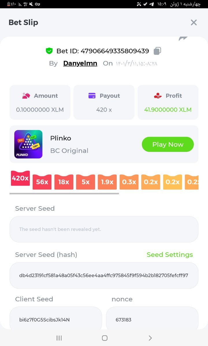 Bet just for low payout on crash but suddenly network loss and when my my phone network come it show i am win on 100x because crash go above 100x and that's my wow accident win moment152499697_100xhttps---bc.game-sd--sd10KBXXRPVQBPCJ.thumb.jpg.fb90305e1b94019de793145547720645.jpg